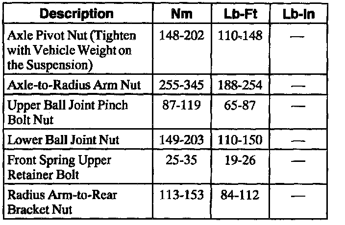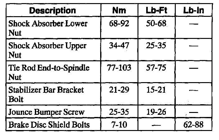 Torque Specifications