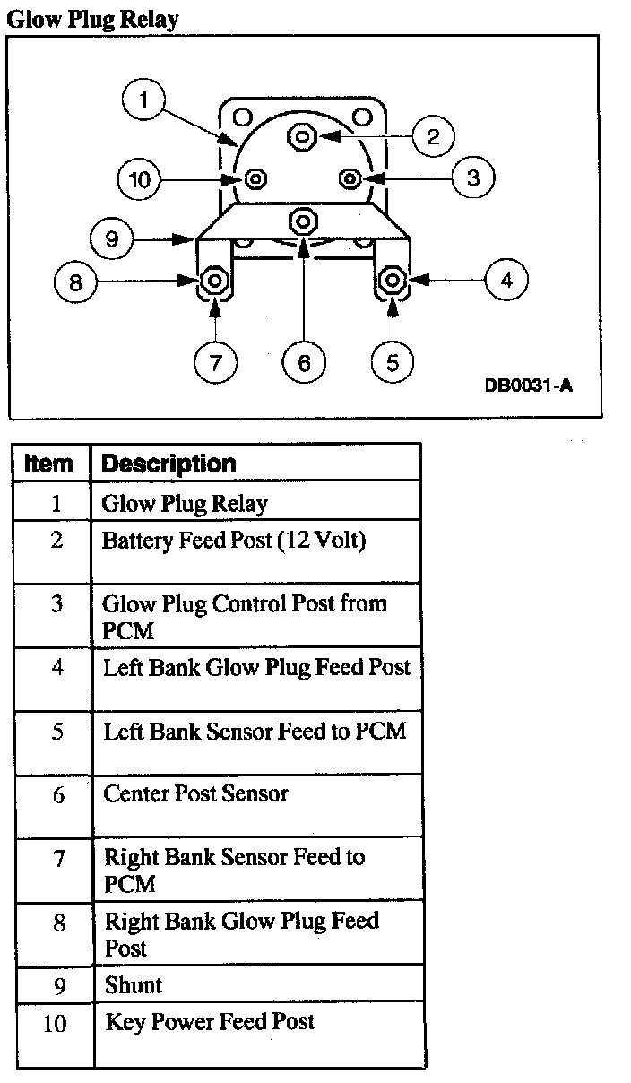 Three sensing wires measure the voltage drops across the shunt when the glow plugs are operating. A failure in the glow plug system will set a Diagnostic Trouble Code (DTC).