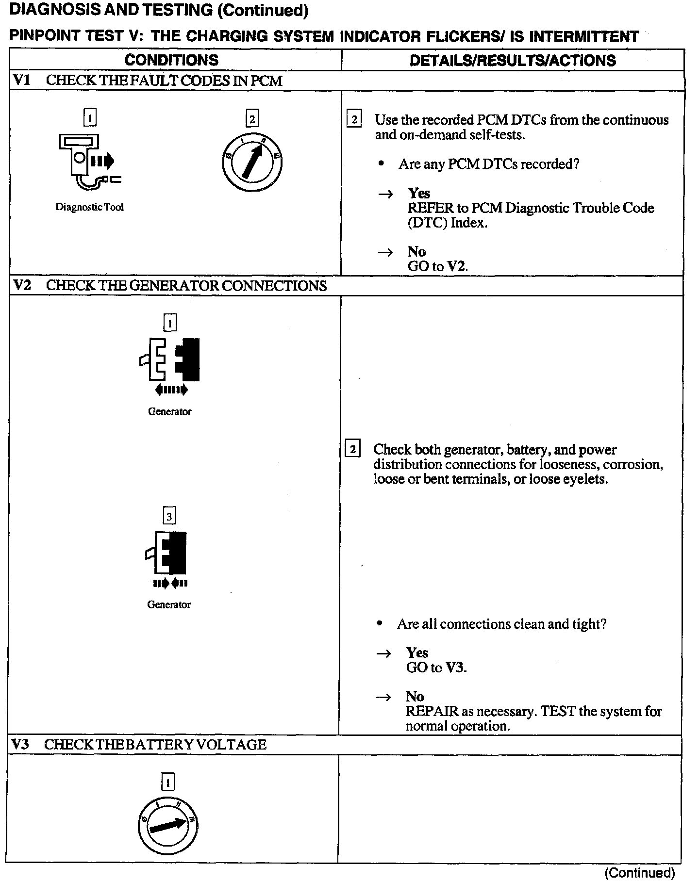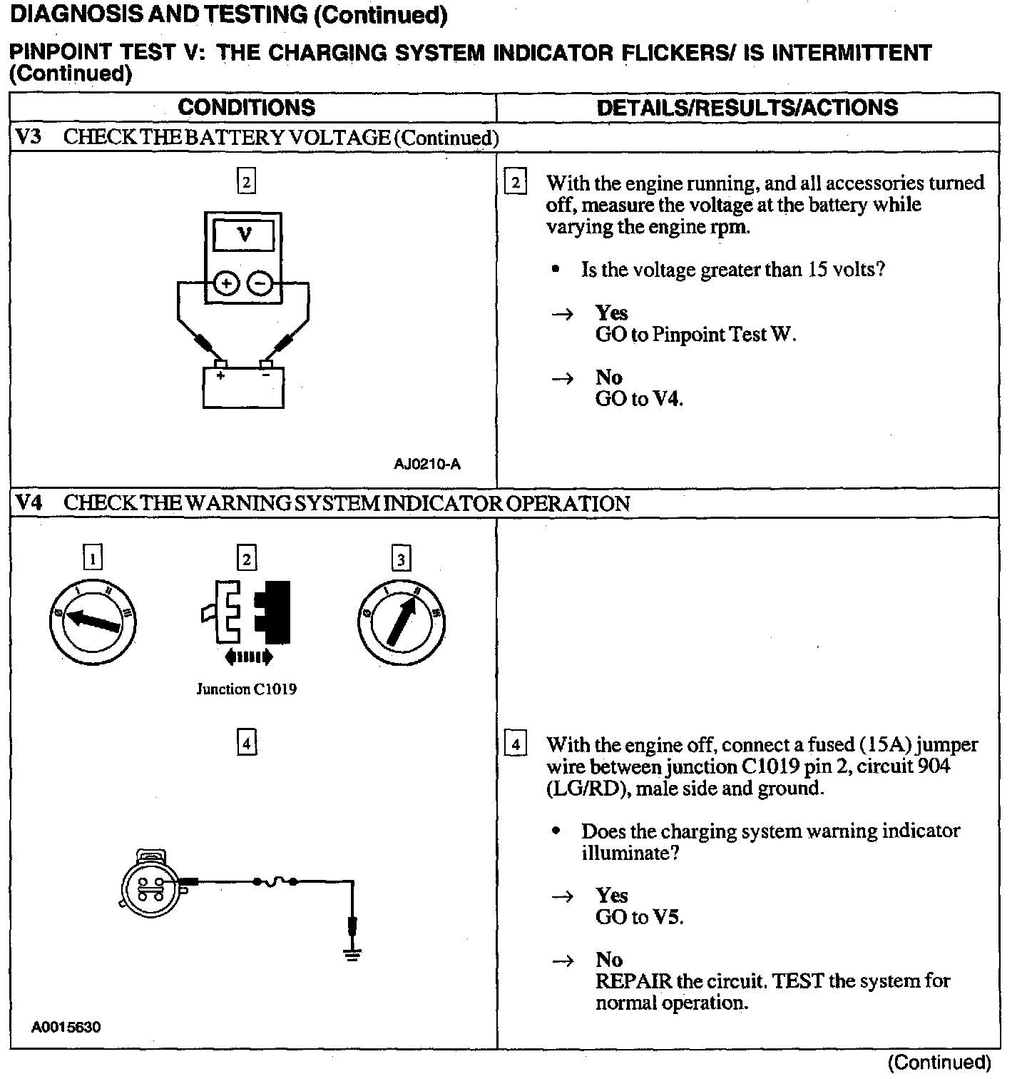 Test V: Charging System Indicator Flickers/ Is Intermittent