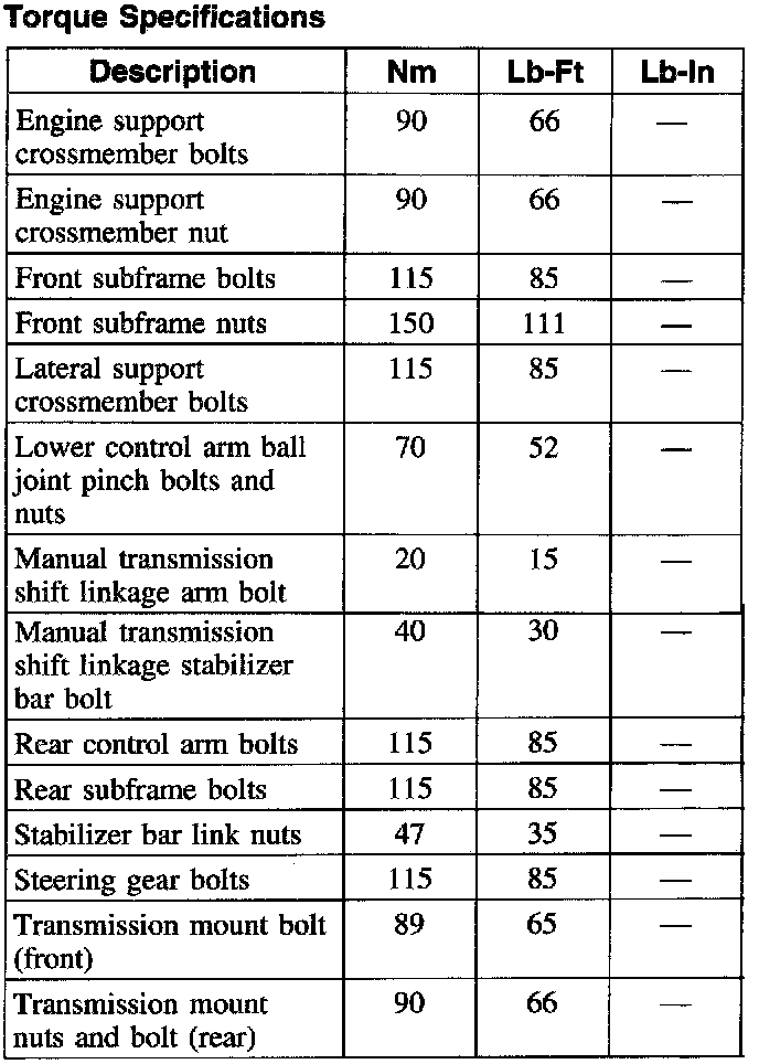 Torque Specifications: