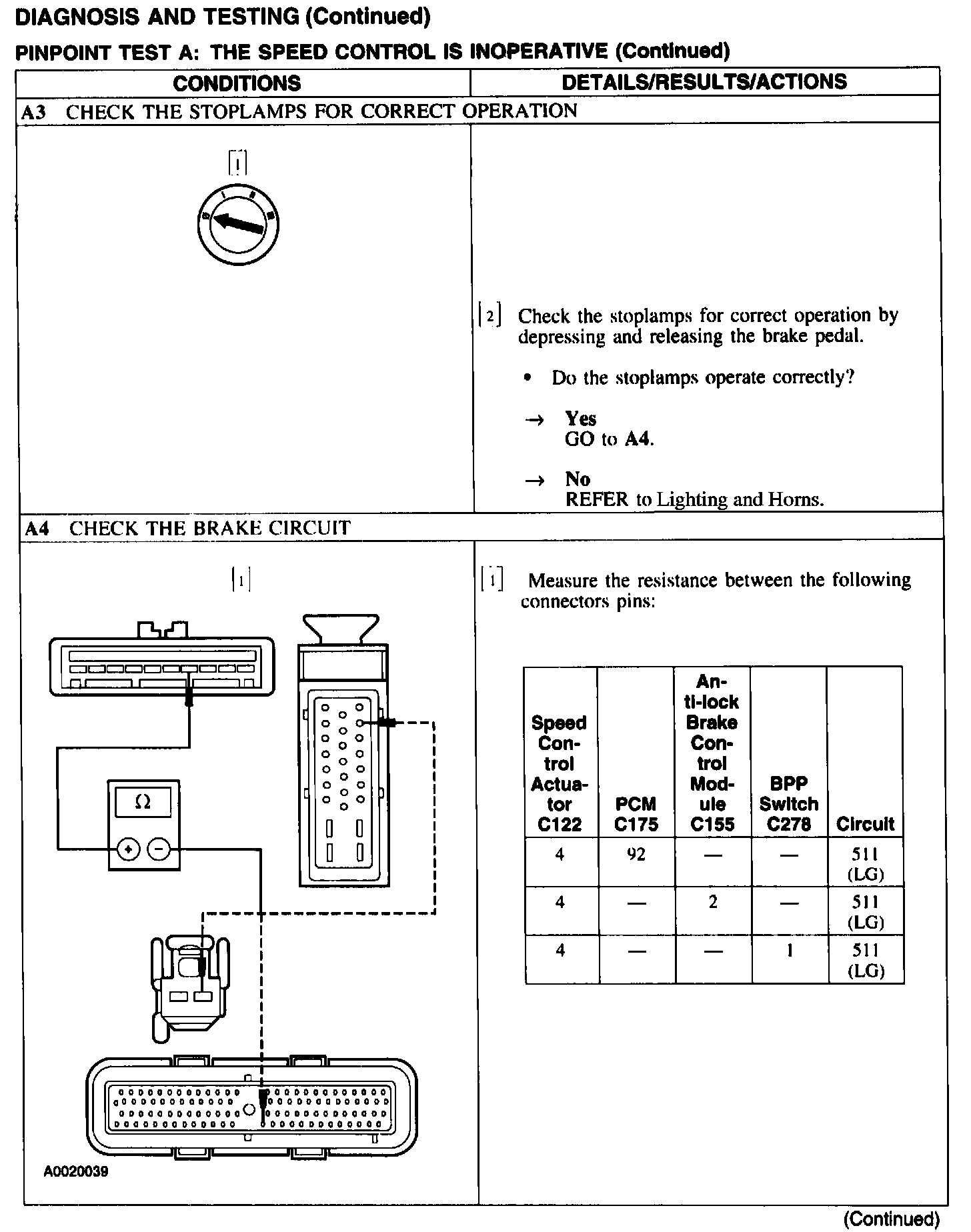 Test A: Speed Control Is Inoperative
