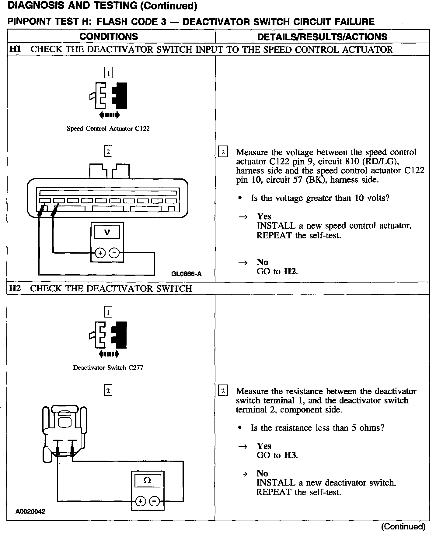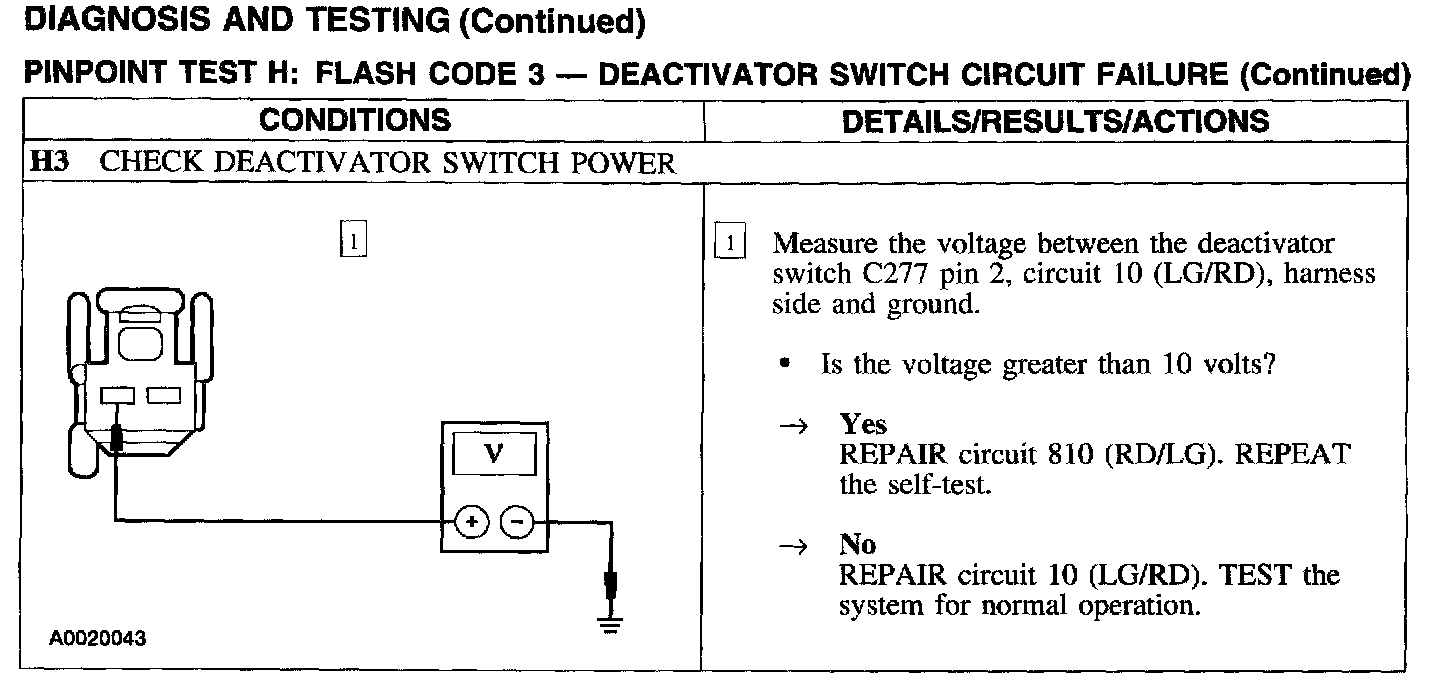 Test H: Flash Code 3 - Deactivator Switch Circuit Failure