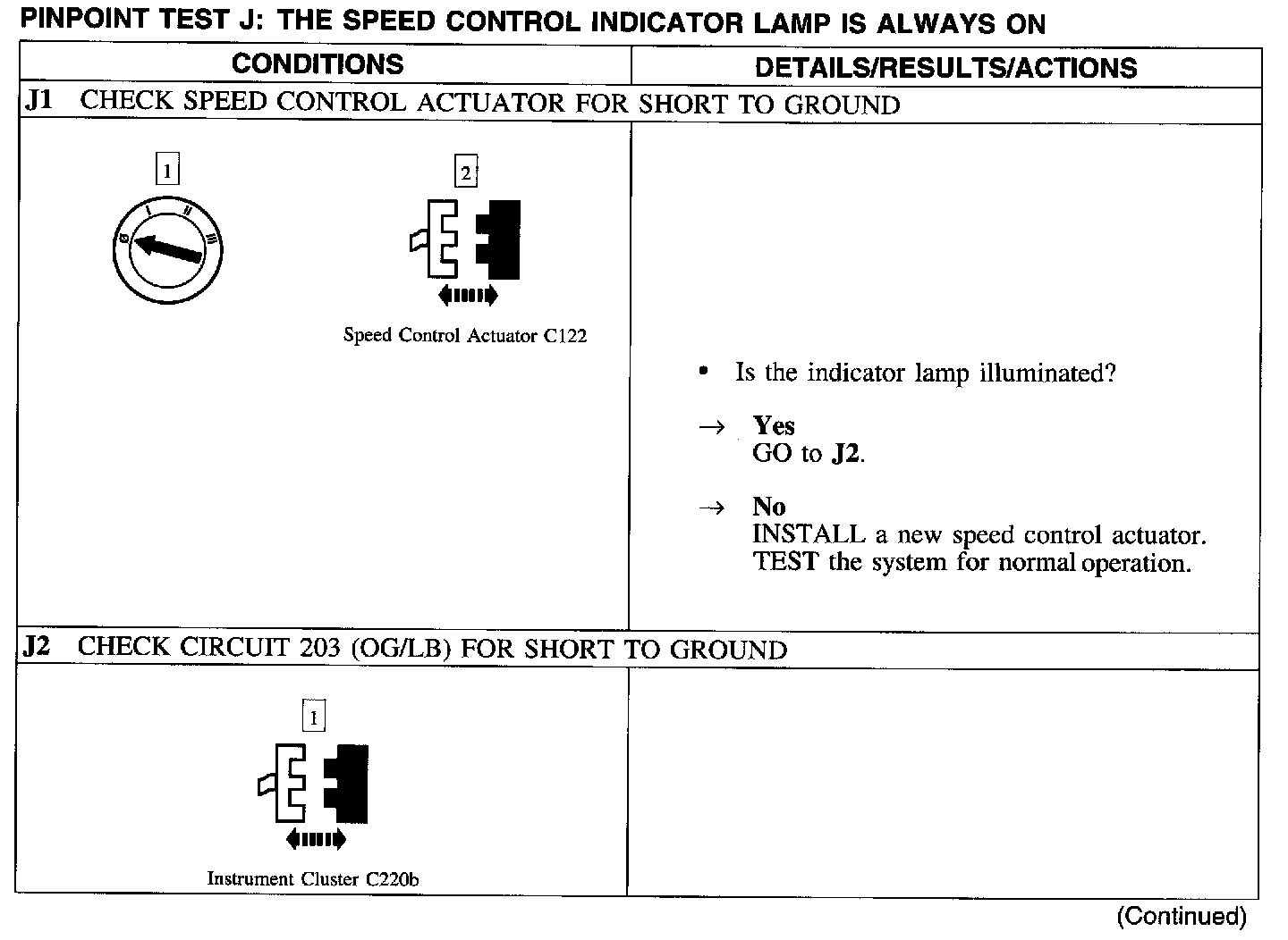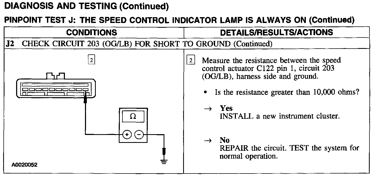 Test J: Speed Control Indicator Lamp Is Always On
