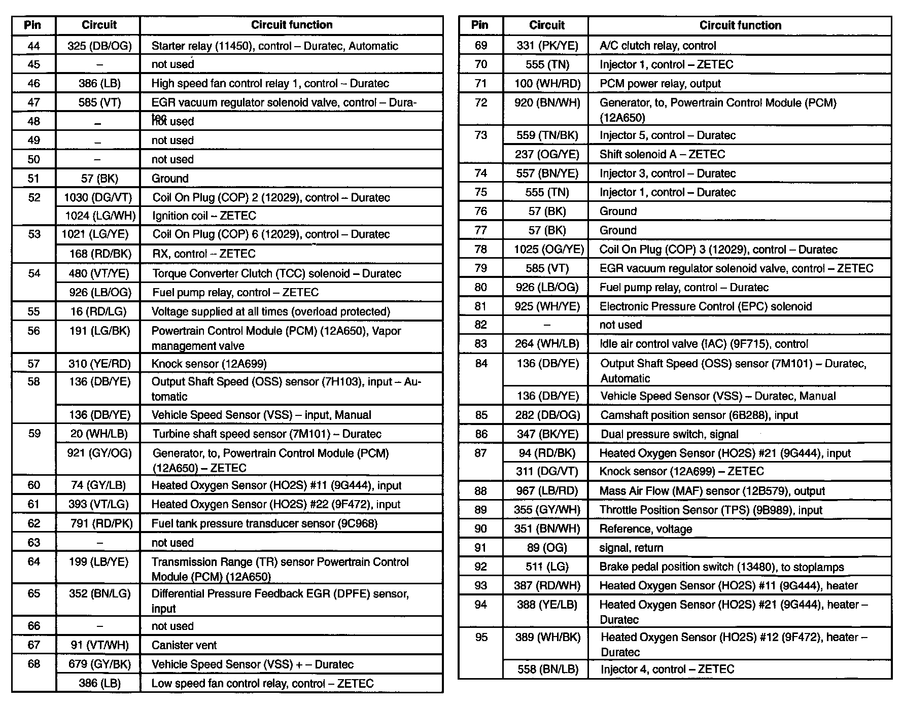 Escape 2WD L4-122 2.0L DOHC VIN B Zetec SFI