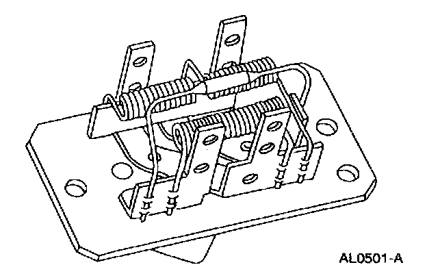 The four-speed operation of the blower motor is achieved through the blower motor switch resistor and contains a thermal limiter which is used as a temperature protecting fuse. The assembly is located on the passenger side on the evaporator core housing behind the glove compartment.