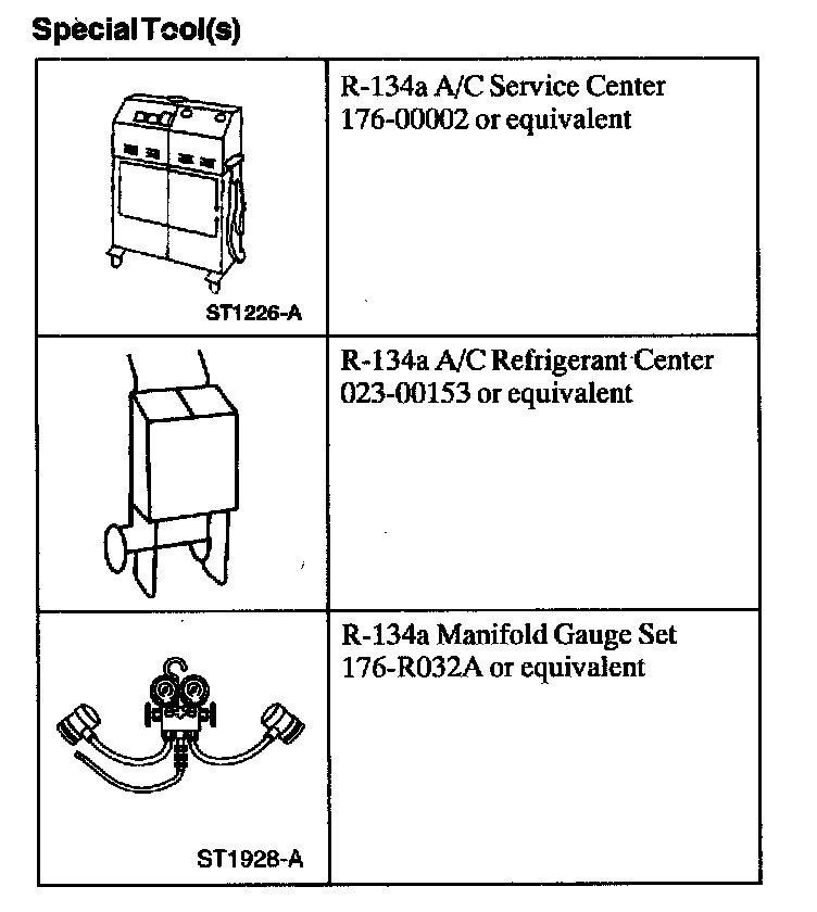 NOTE: Some R-134a service centers require the use of an A/C manifold gauge set.