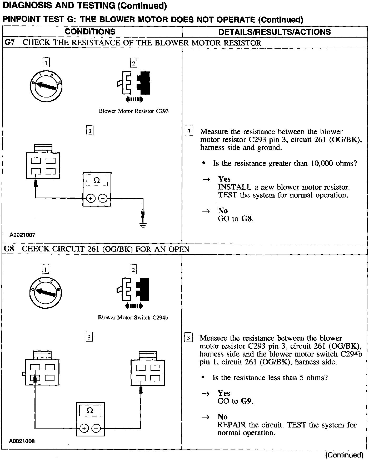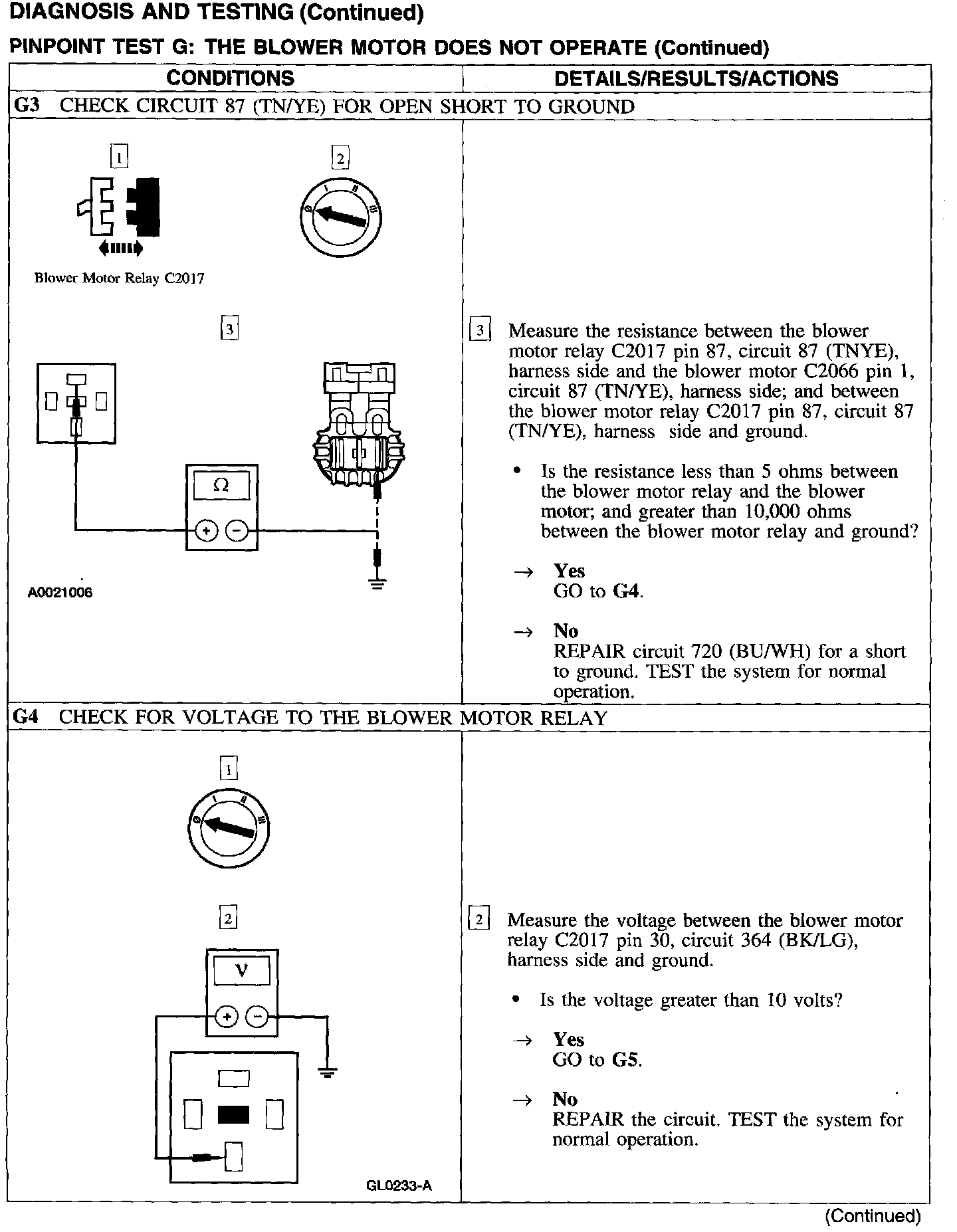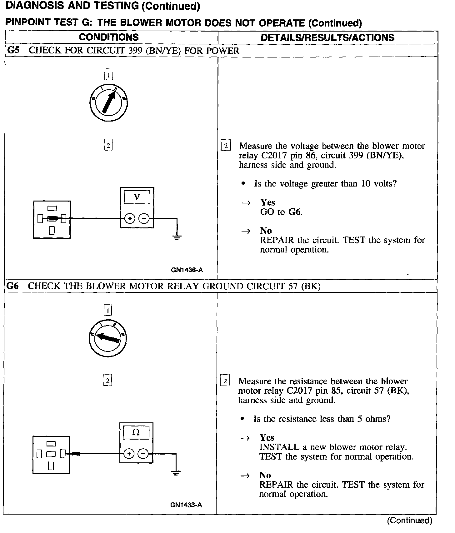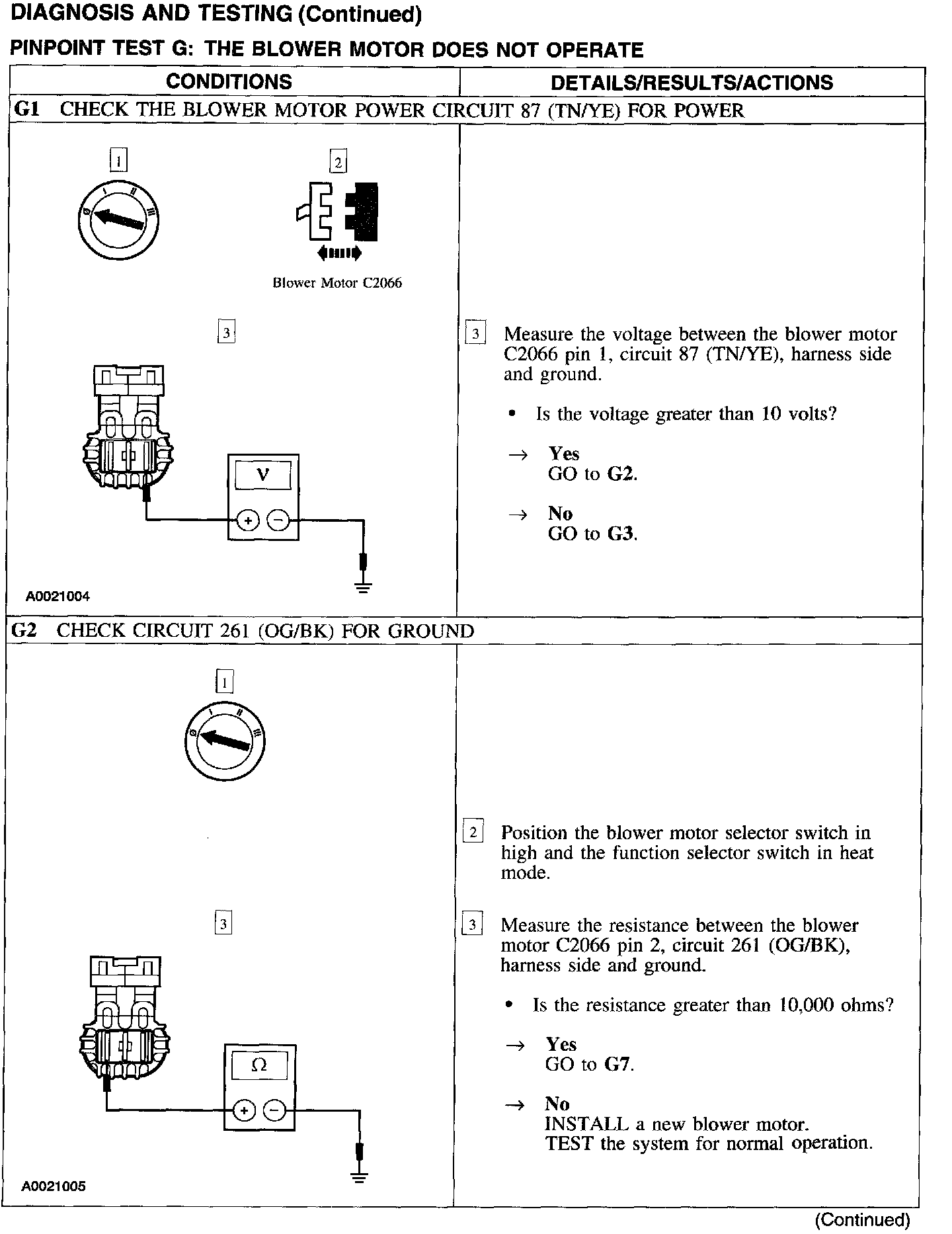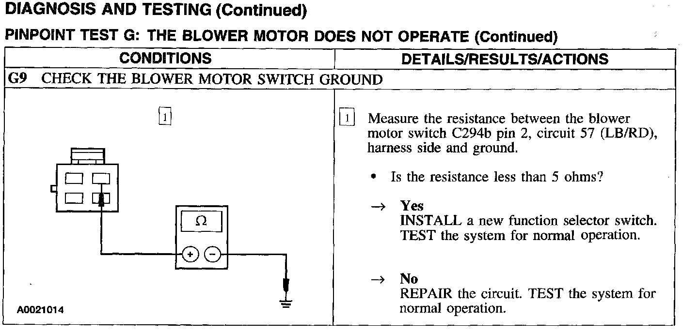 Test G: Blower Motor Does Not Operate