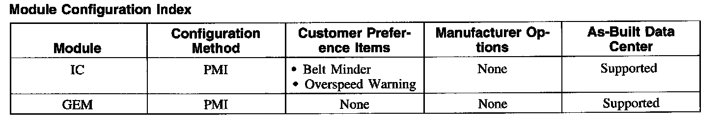 Module Configuration Index: