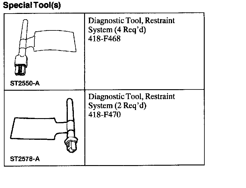 ^ Diagnostics may be performed on seat systems other than the side airbag or the safety belt pretensioner (if equipped) system (lumbar, climate controlled, heated, power seat track) with the seat installed in the vehicle as long as the restraint system diagnostic tools are installed under the seats in the side airbag and safety belt pretensioner to floor connectors.