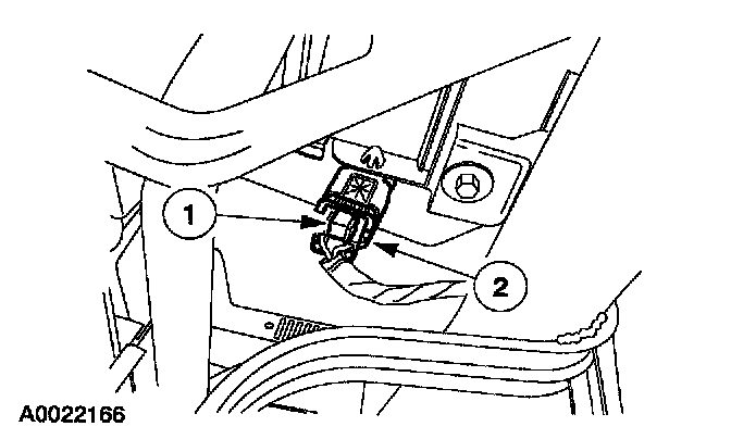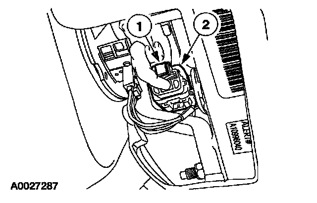 1 Push to release the passenger air bag module electrical connector locking clip.