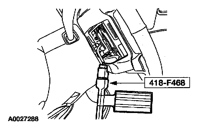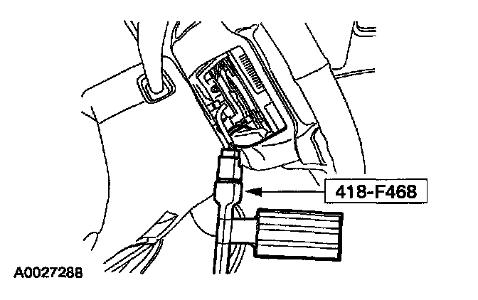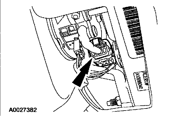 4. Attach the restraint system diagnostic tool to the clockspring electrical connector at the top of the steering column.