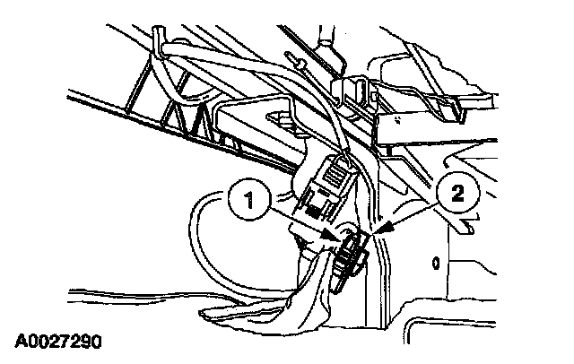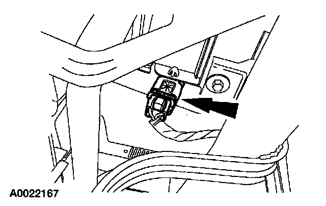 1 Remove the passenger safety belt buckle pretensioner electrical connector from the bracket under the seat.