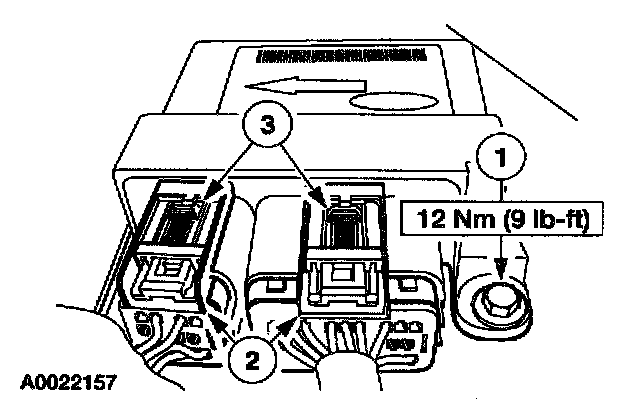 1 Slide and disengage the two RCM electrical connector locking dips.