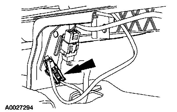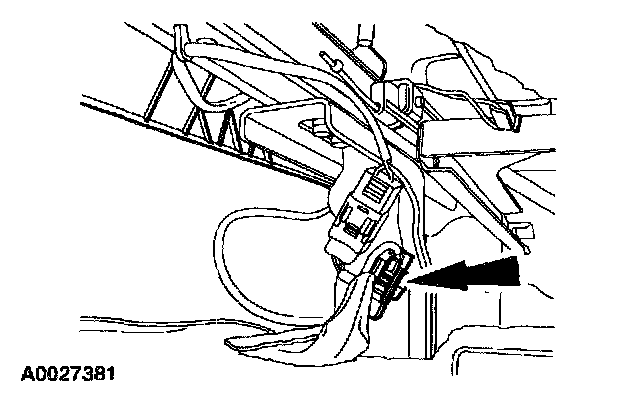 11. Attach the restraint system diagnostic tool to the passenger side air bag module floor electrical connector.