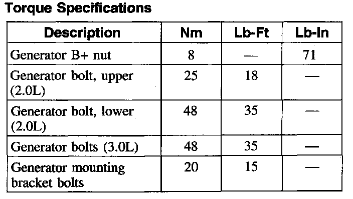 Torque Specifications: