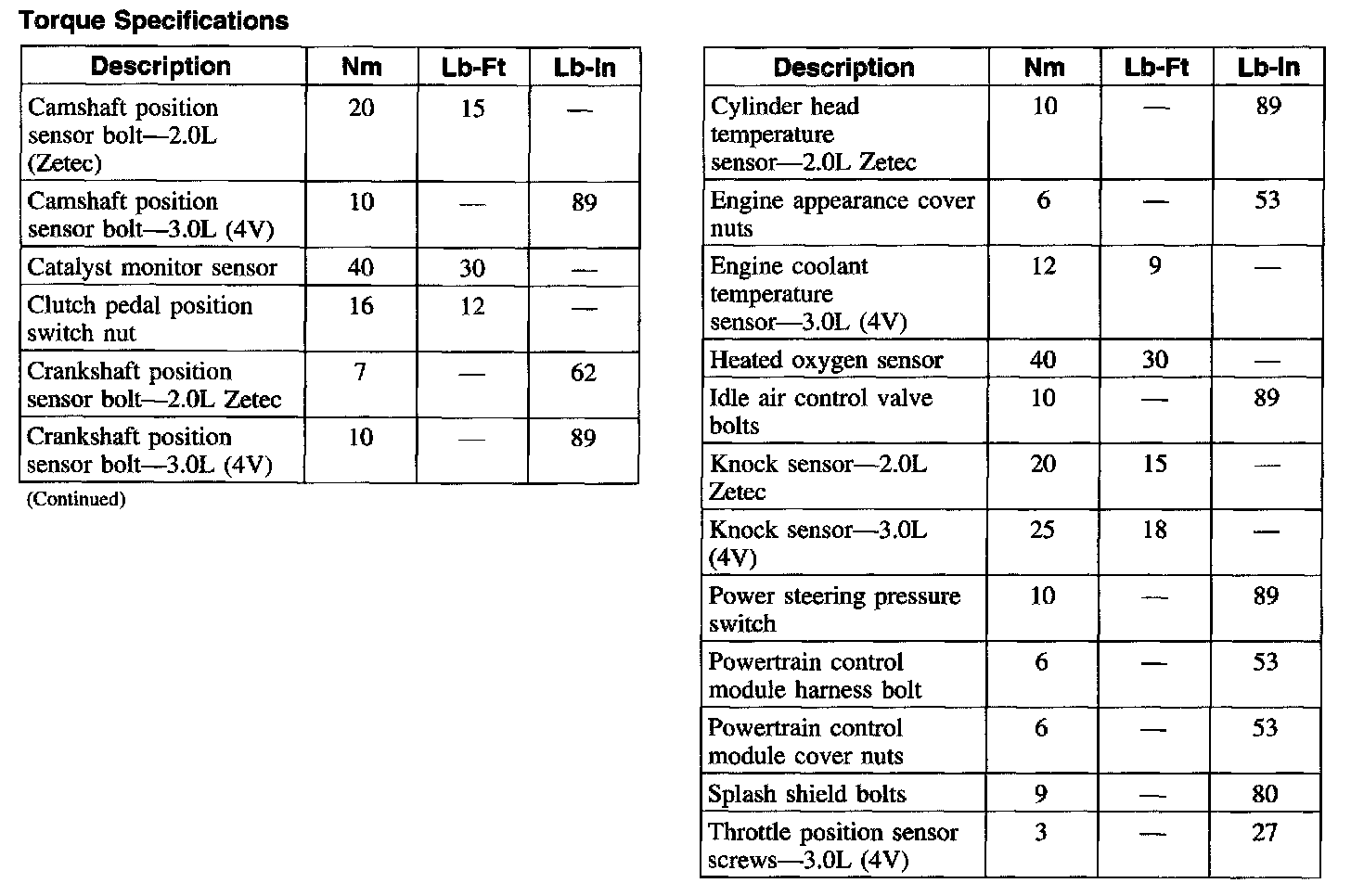 Torque Specifications: