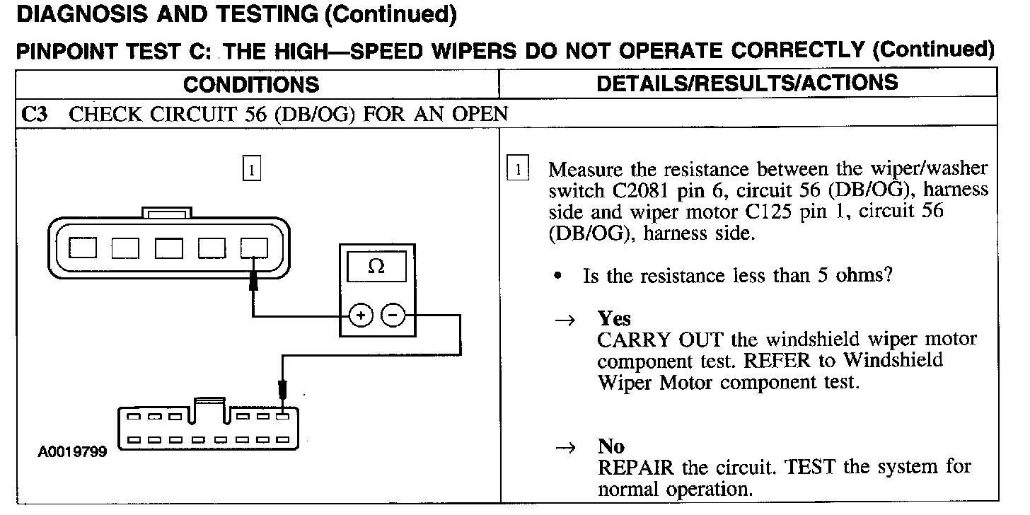 Test C: High Wiper Speed Does Not Operate Properly