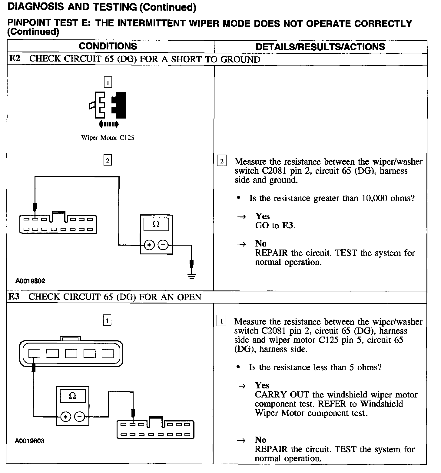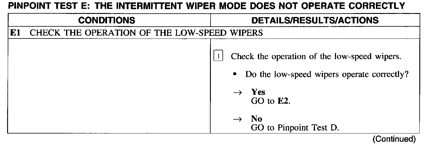 Test E: Intermittent Wiper Speed Does Not Operate Properly