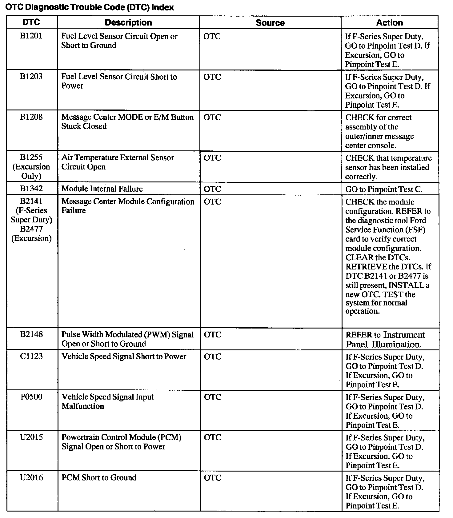DTC Index B1201 - U2016: