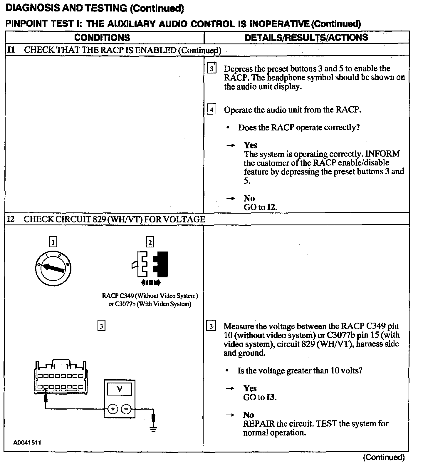 Test I: Auxiliary Audio Control Is Inoperative