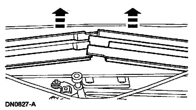 8. NOTE: Remove the cowl top vent panel from the center to avoid damage to the locating pins at each outer end of the cowl panels.