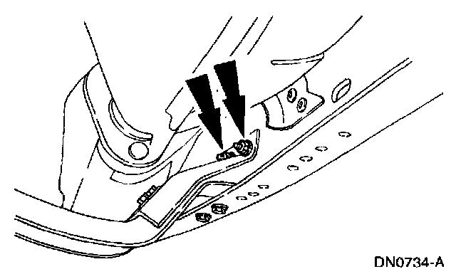 8. Remove the transmission support crossmember nuts and bolts (LH side).