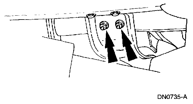 7. Remove the transmission support crossmember nuts and bolts (RH side).