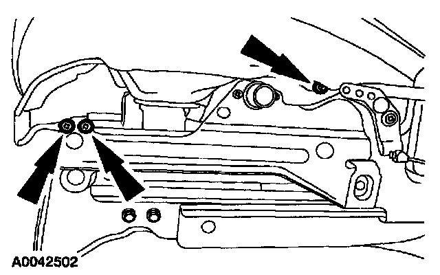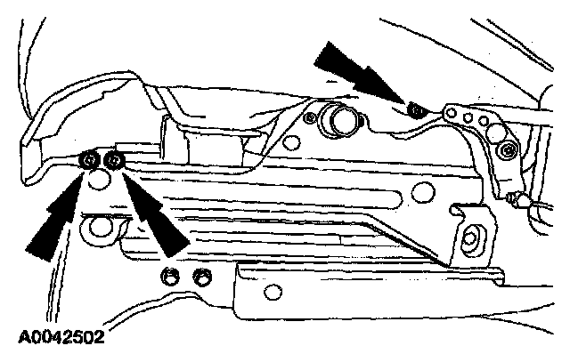 10. Remove the three trim support wire screws securing the trim cover side face to the seat track riser.