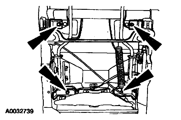 12. Remove the four seat cushion pan attachment bolts. Lift off the seat cushion assembly.