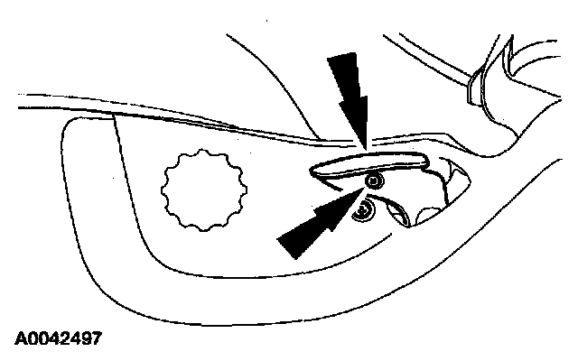 ^ Push lumbar adjuster control inward to provide clearance for trim panel removal.