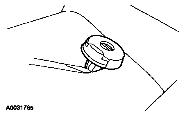 8. Using an appropriate pry tool, press the release tab in, remove the head restraint rod guides and discard.