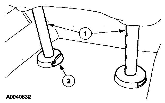 ^ Install new units during reassembly. The LH and RH head restraint rod guides will be damaged during removal.