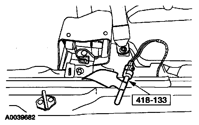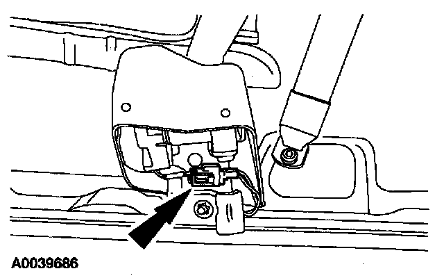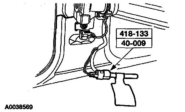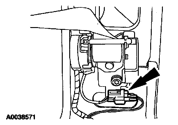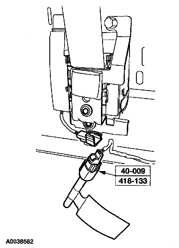 38. Attach the restraint system diagnostic tool to the driver side safety belt retractor pretensioner floor electrical connector.