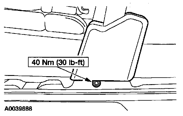26. Position the driver side safety belt retractor pretensioner and install bolt.