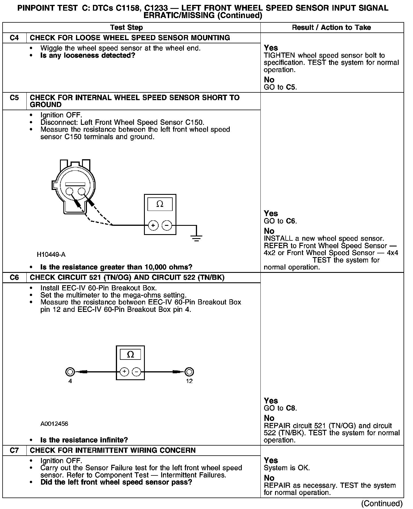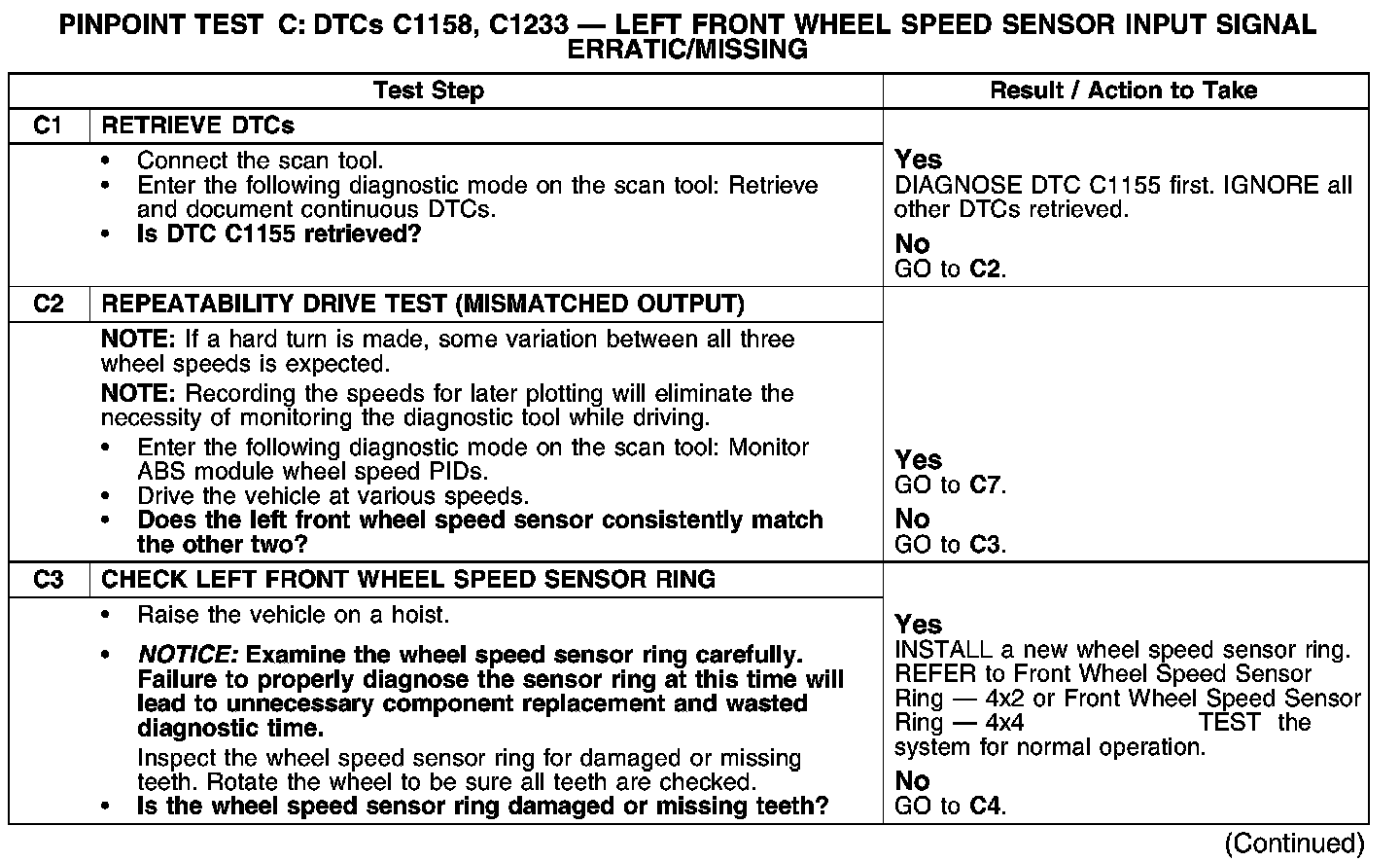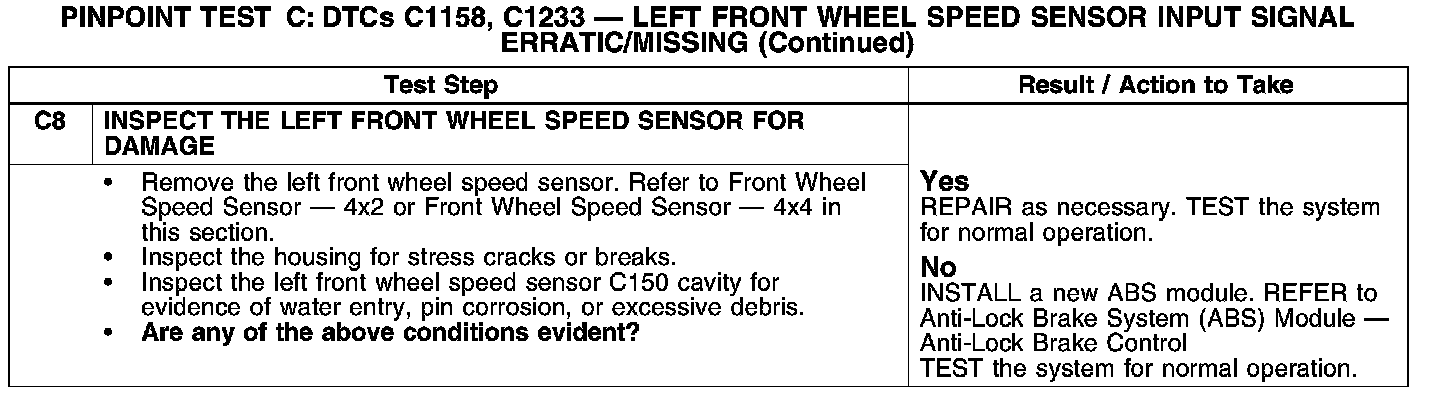 PINPOINT TEST C: DTCs C1158, C1233-LEFT FRONT