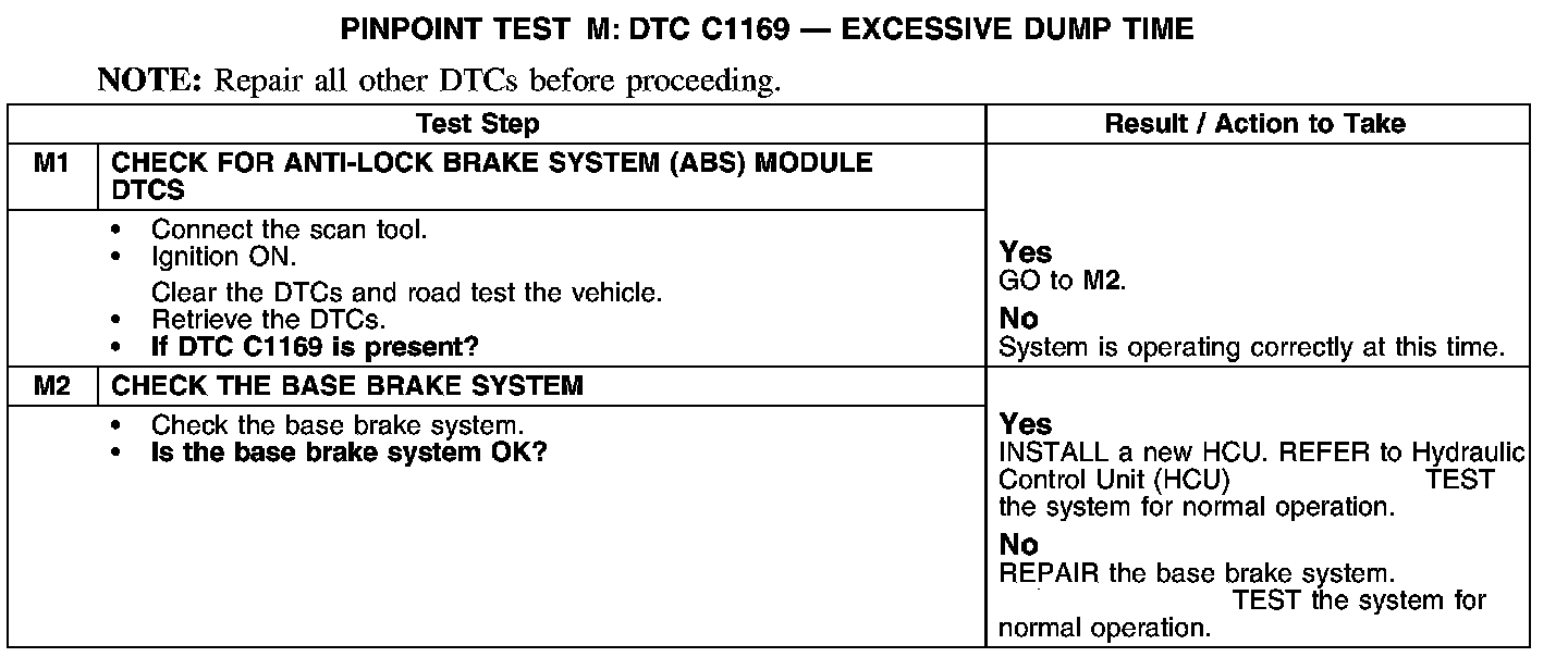 PINPOINT TEST M: DTC C1169-EXCESSIVE DUMP TIME