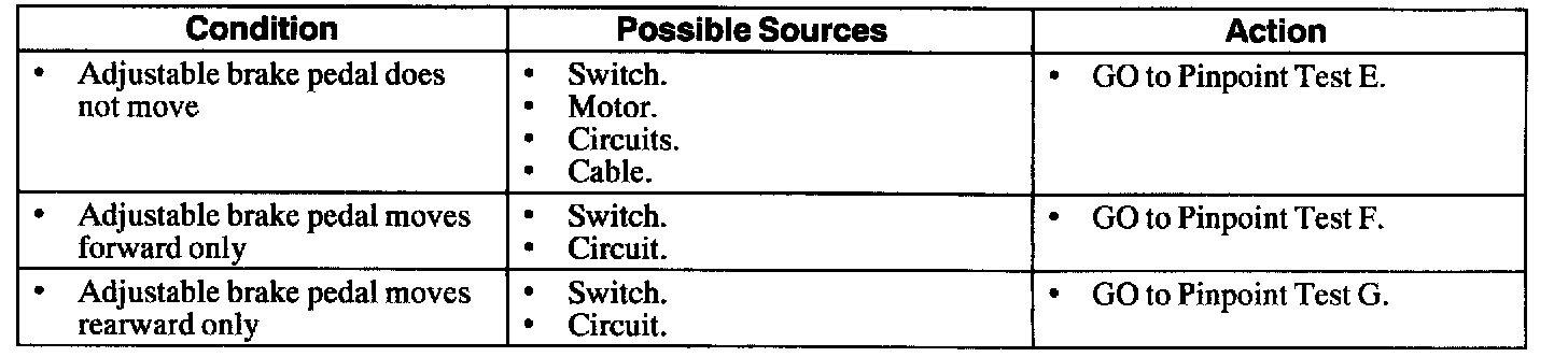 Symptom Chart - Adjustable Pedal Without Memory