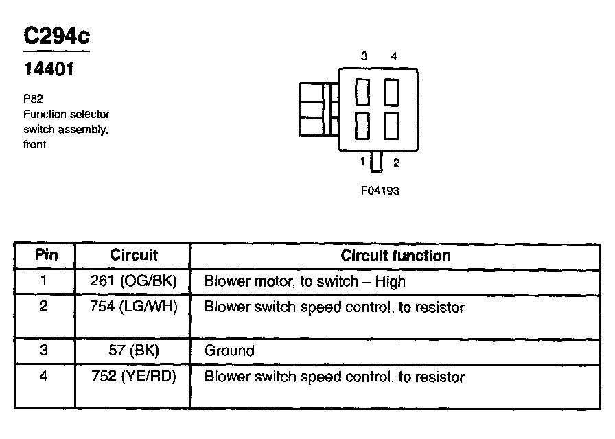 Function Selector Switch Assembly, Front
