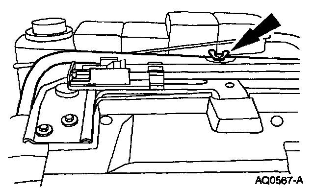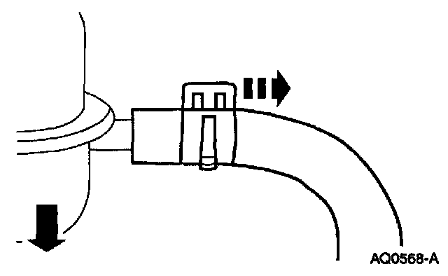 5. Squeeze the clamp and remove the degas bottle supply hose.