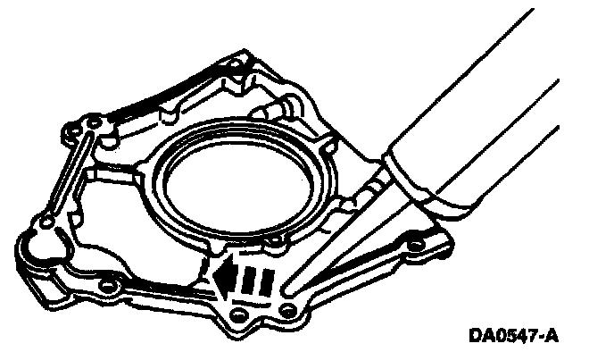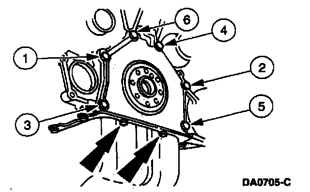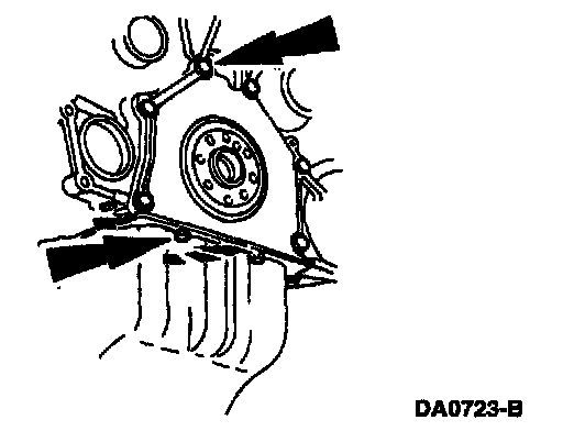 3. NOTE: If the rear main oil seal is still in place and being reinstalled, be sure the lip is not folded over or wrinkled during the retainer plate installation. The seal lip must start squarely on the crankshaft journal.