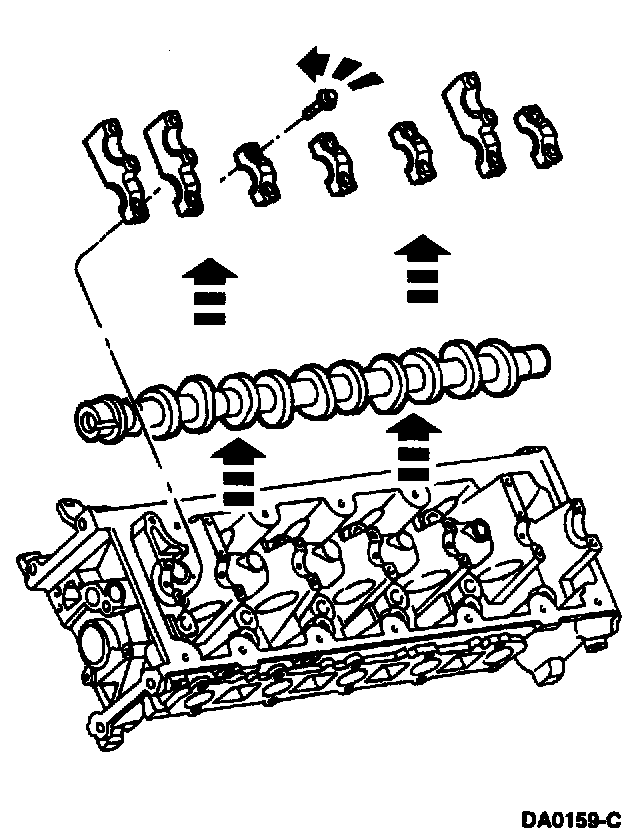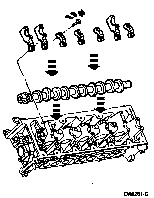 ^ Using clean engine oil, lubricate and position the camshaft bearing caps.