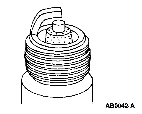 ^ Check for wet, black deposits on the insulator shell bore electrodes, caused by excessive oil entering the combustion chamber through worn rings and pistons, excessive valve-to-guide clearance or worn or loose bearings.