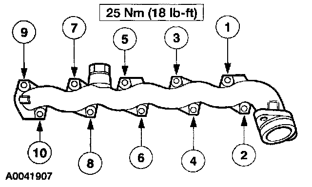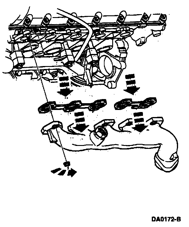 6. Remove the exhaust manifold nuts and the exhaust manifold. Discard the exhaust manifold gaskets.