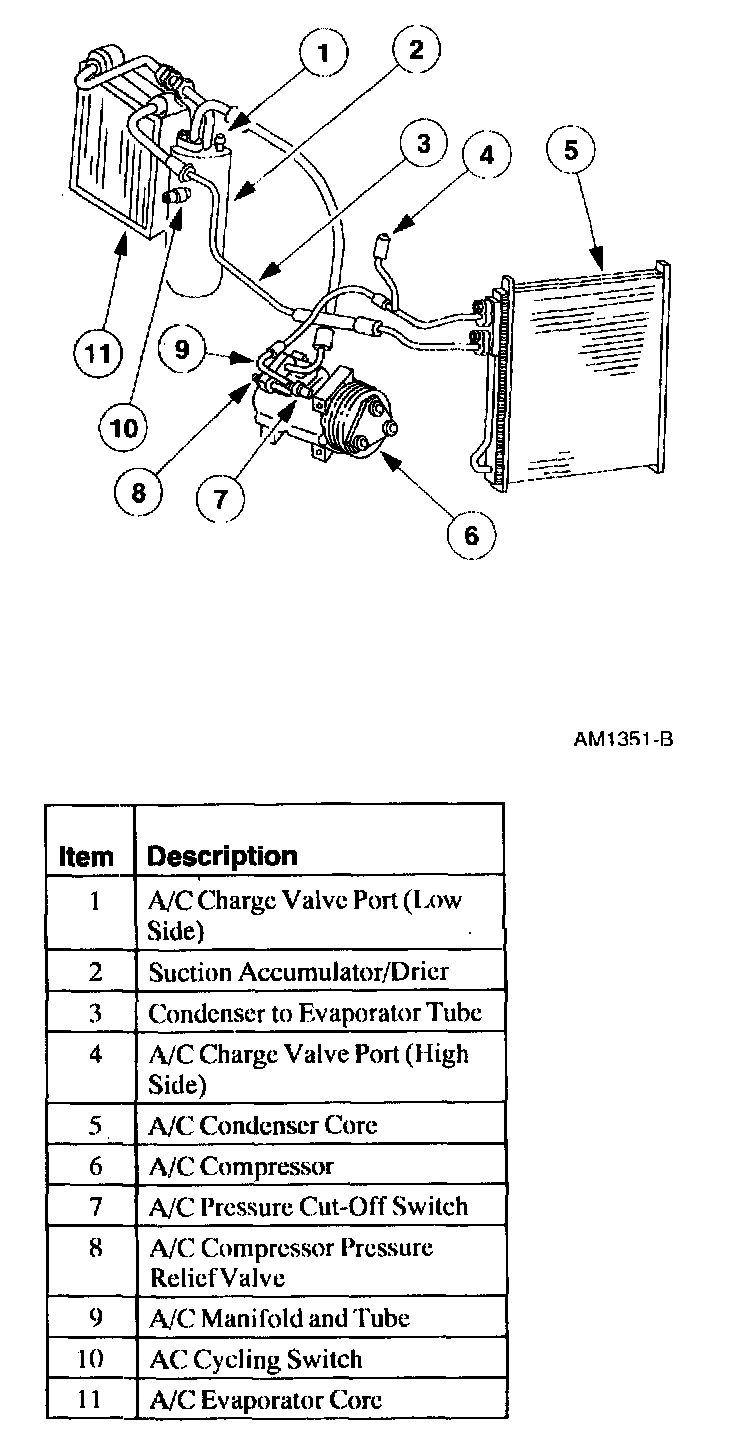 ^ Whenever the A/C compressor is replaced due to a failure that produces debris in the system, also replace the suction accumulator and the A/C evaporator core orifice.