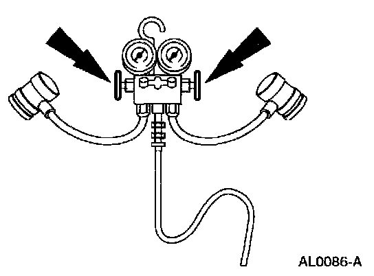 1. Turn both valves on the R-134a Manifold Gauge Set clockwise to close the low- and high-pressure hoses to the center manifold and center hose.