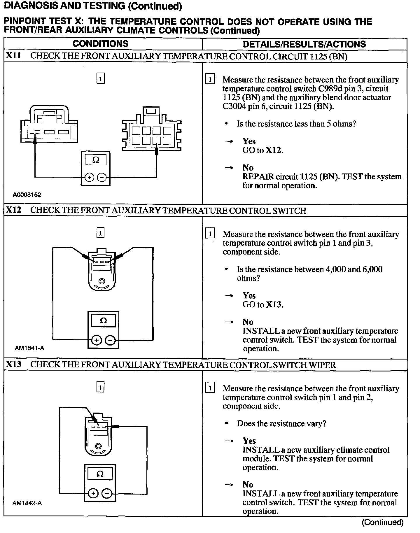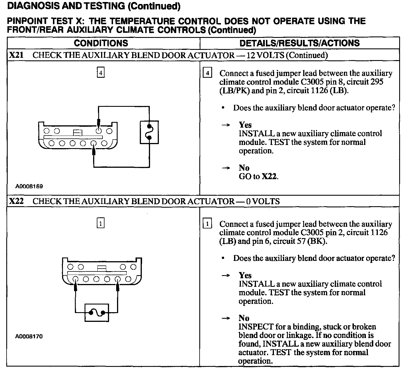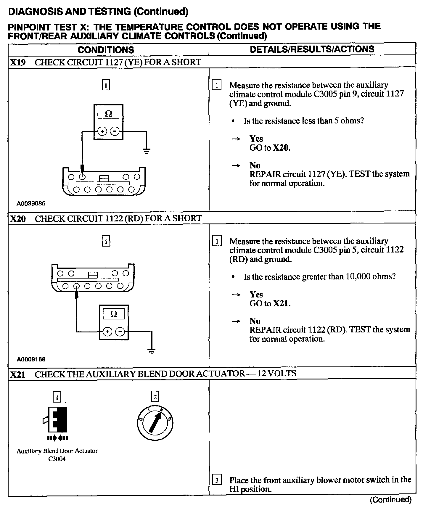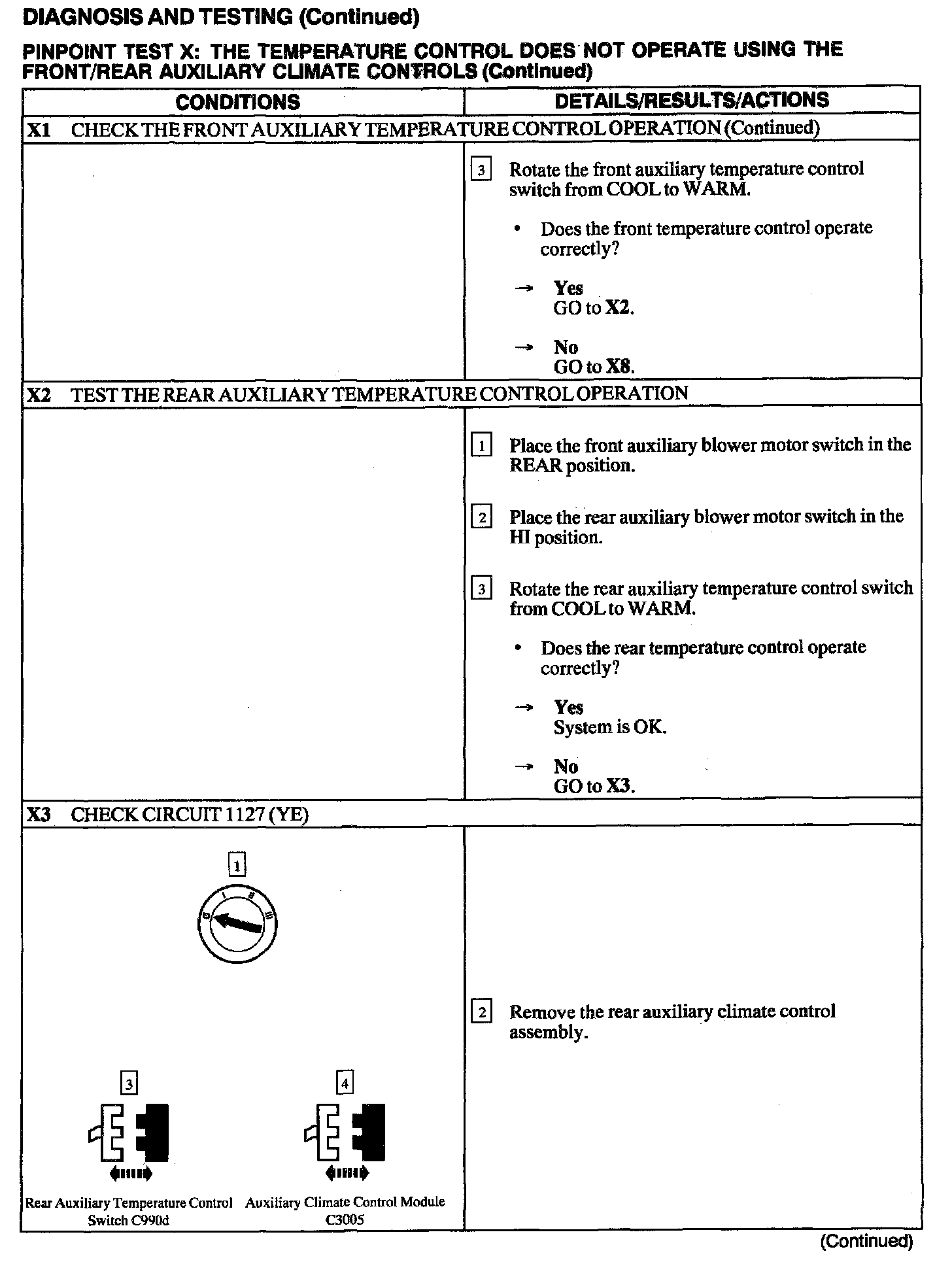 Test X: Temp Control Inop W/Front/Rear Aux Controls