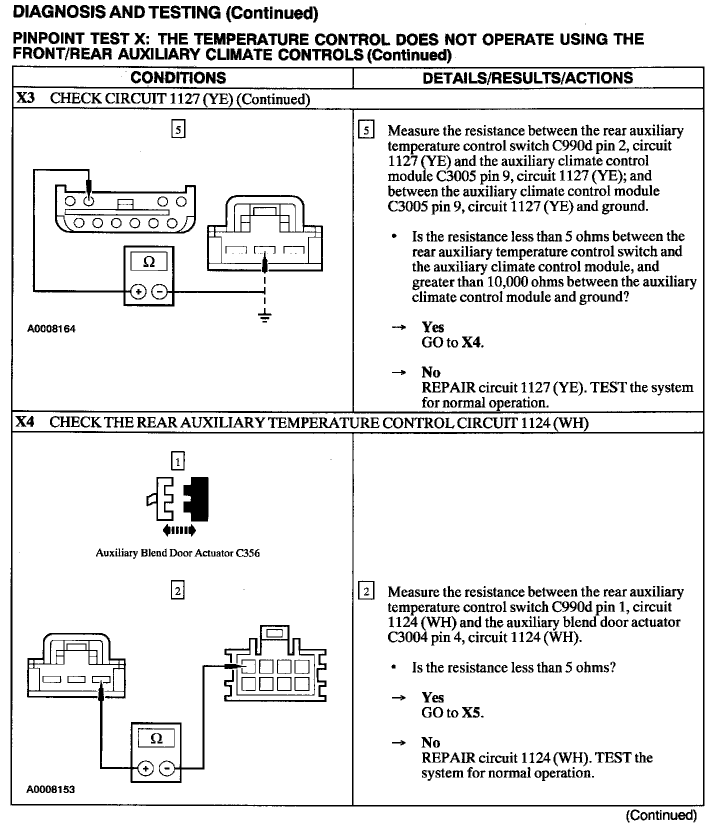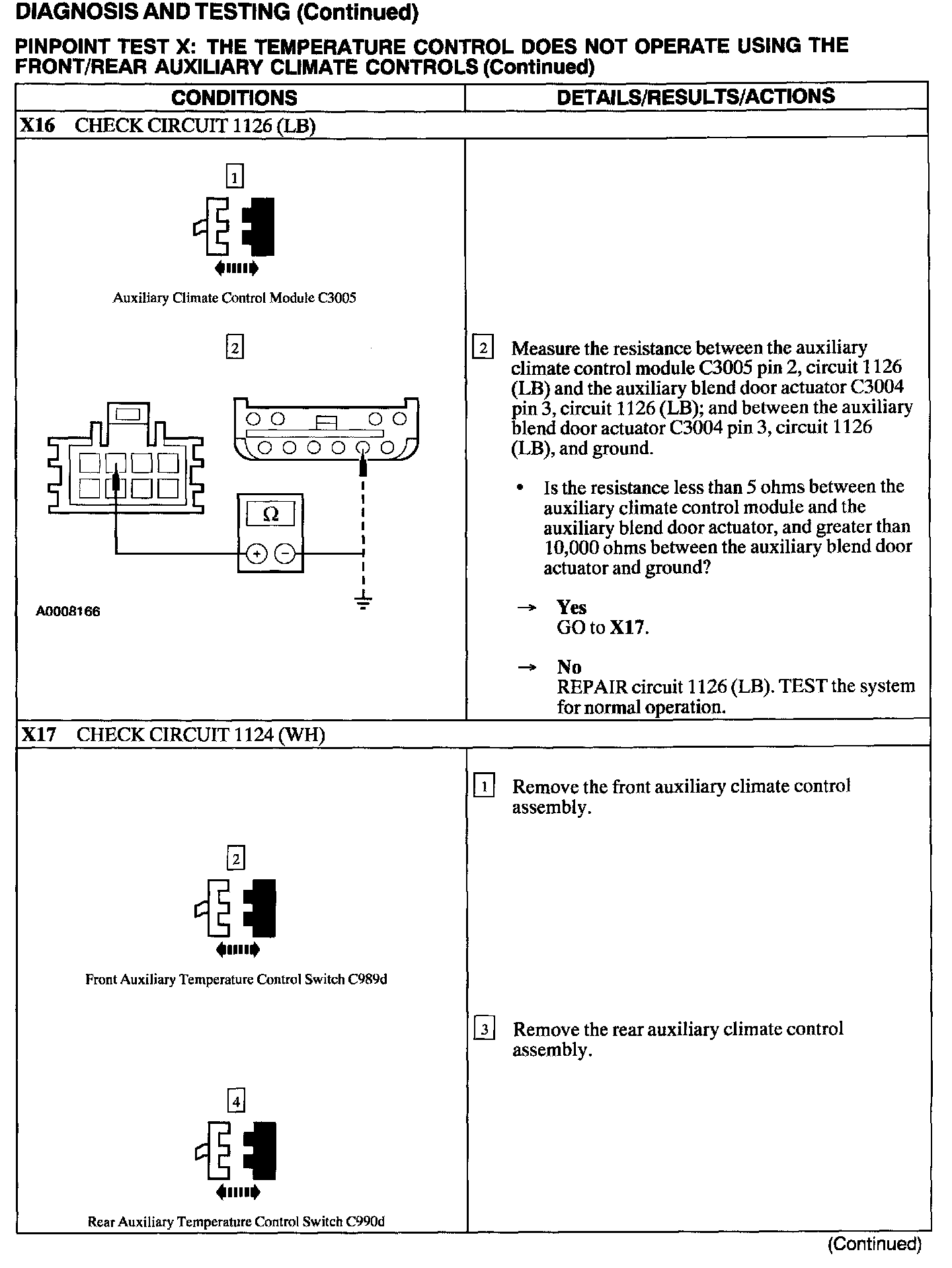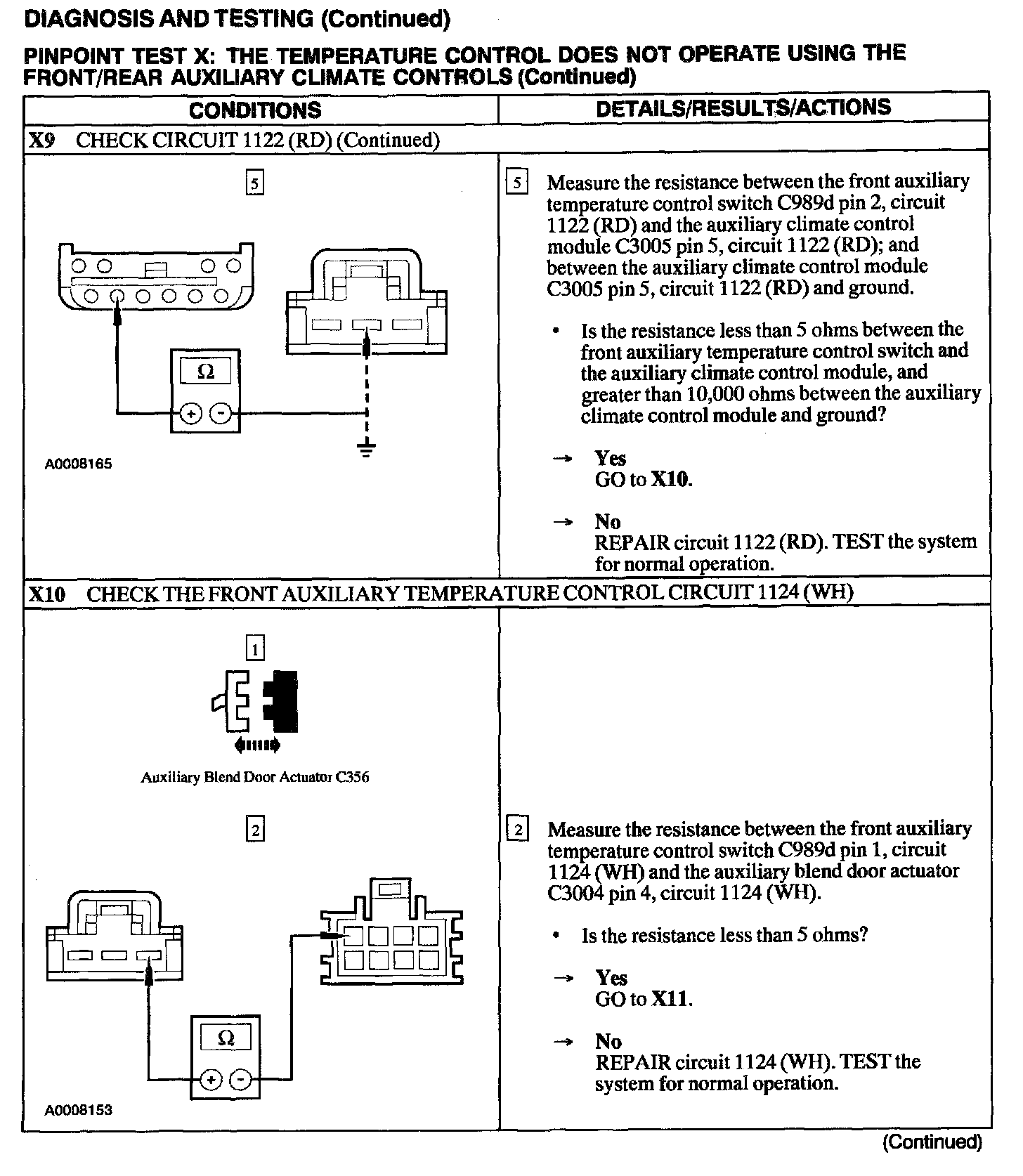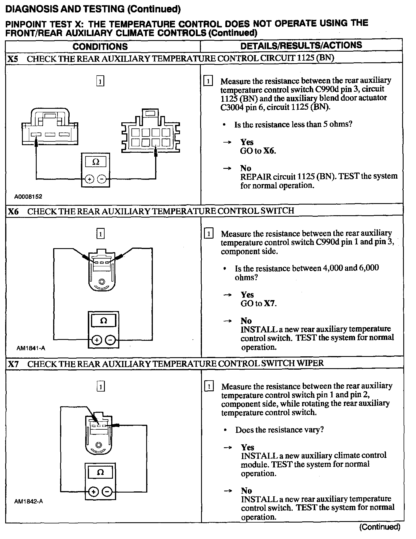 Test X: Temp Control Inop W/Front/Rear Aux Controls