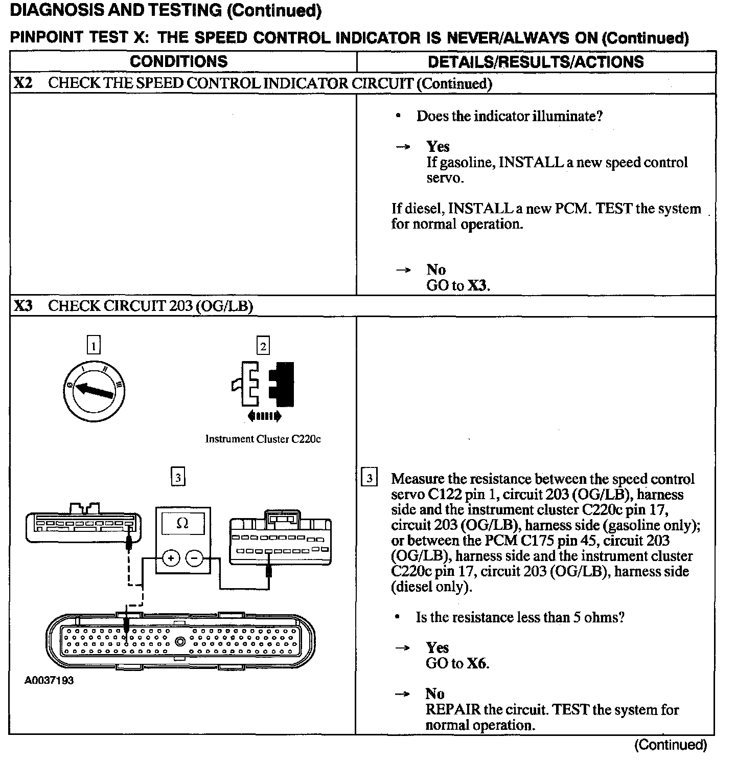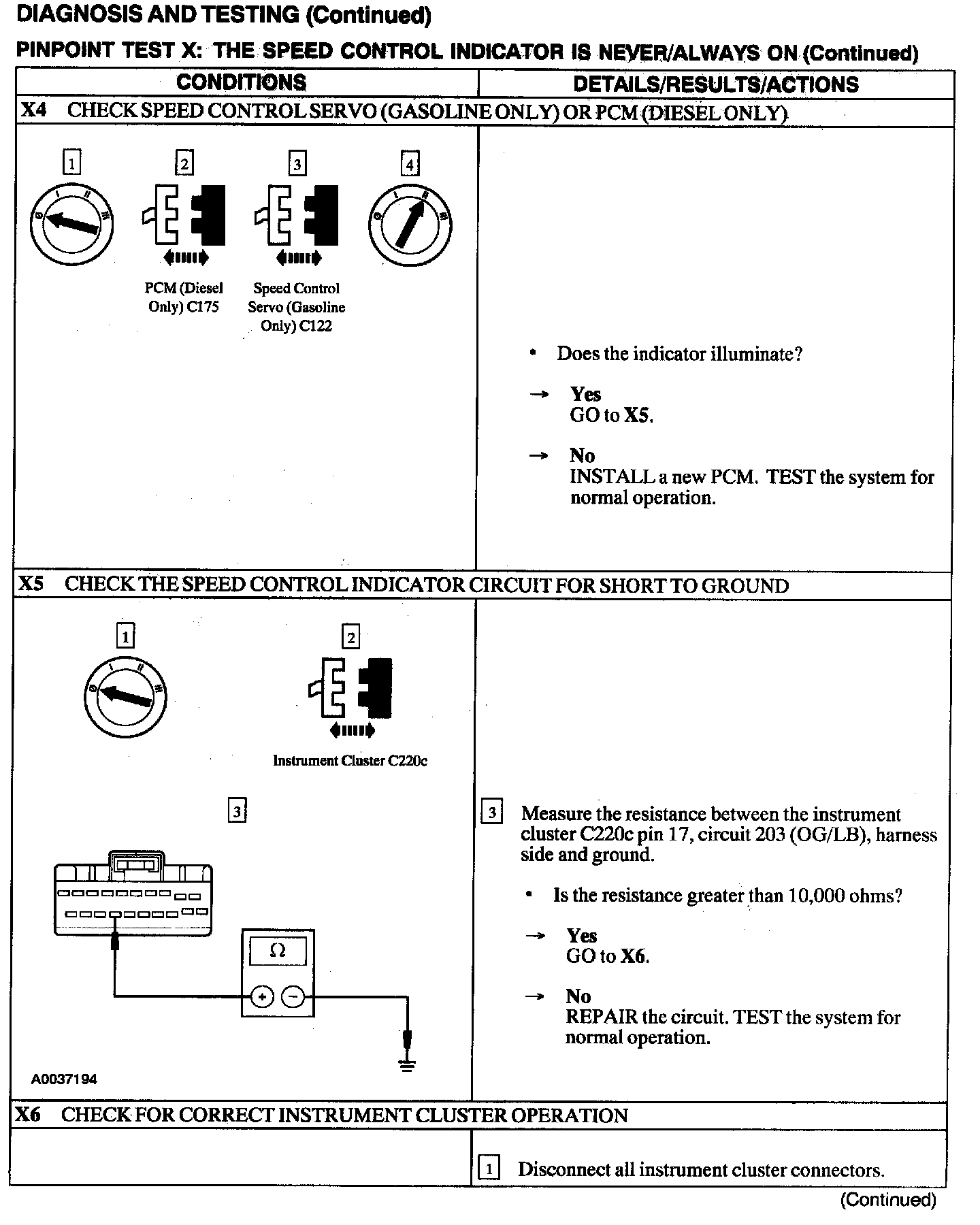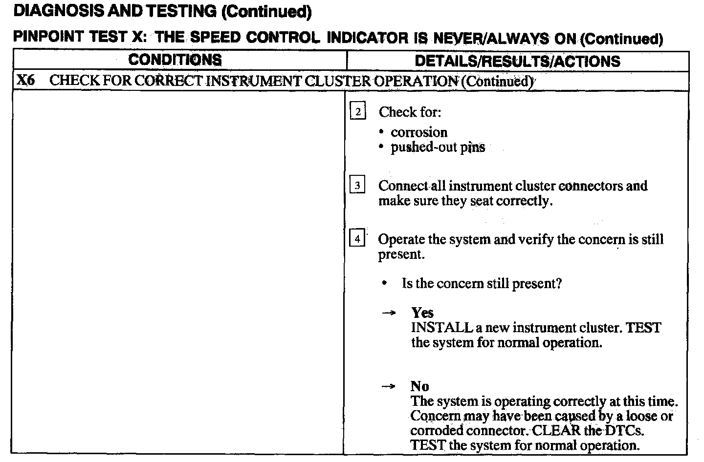 Test X: Speed Control Indicator Is Never/Always On