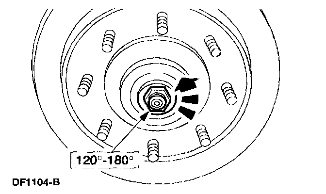 3. While rotating the wheel, tighten the adjusting nut to specification as illustrated to seat the bearings.