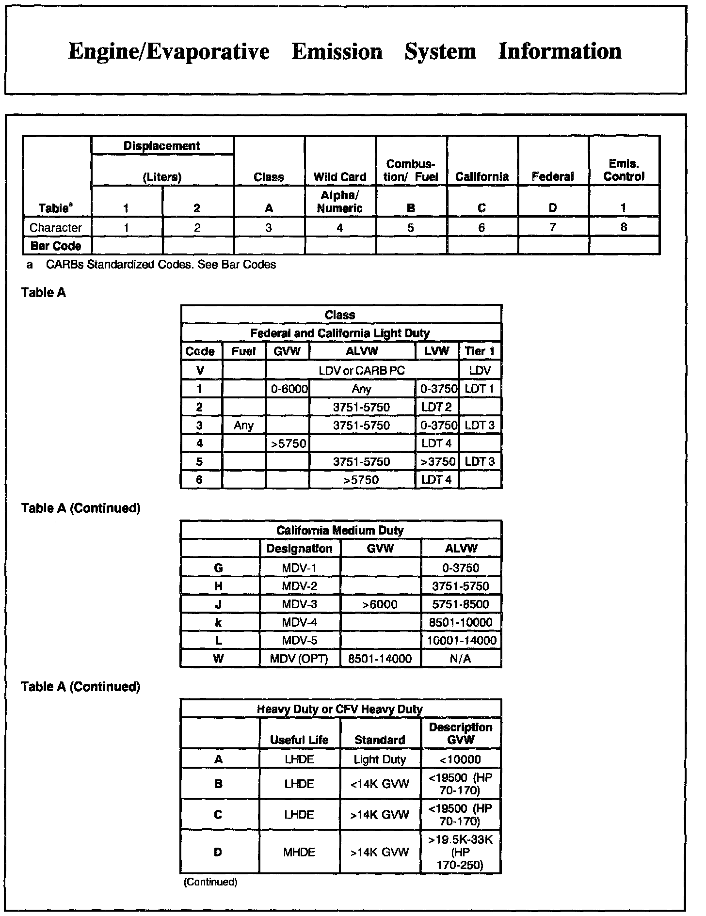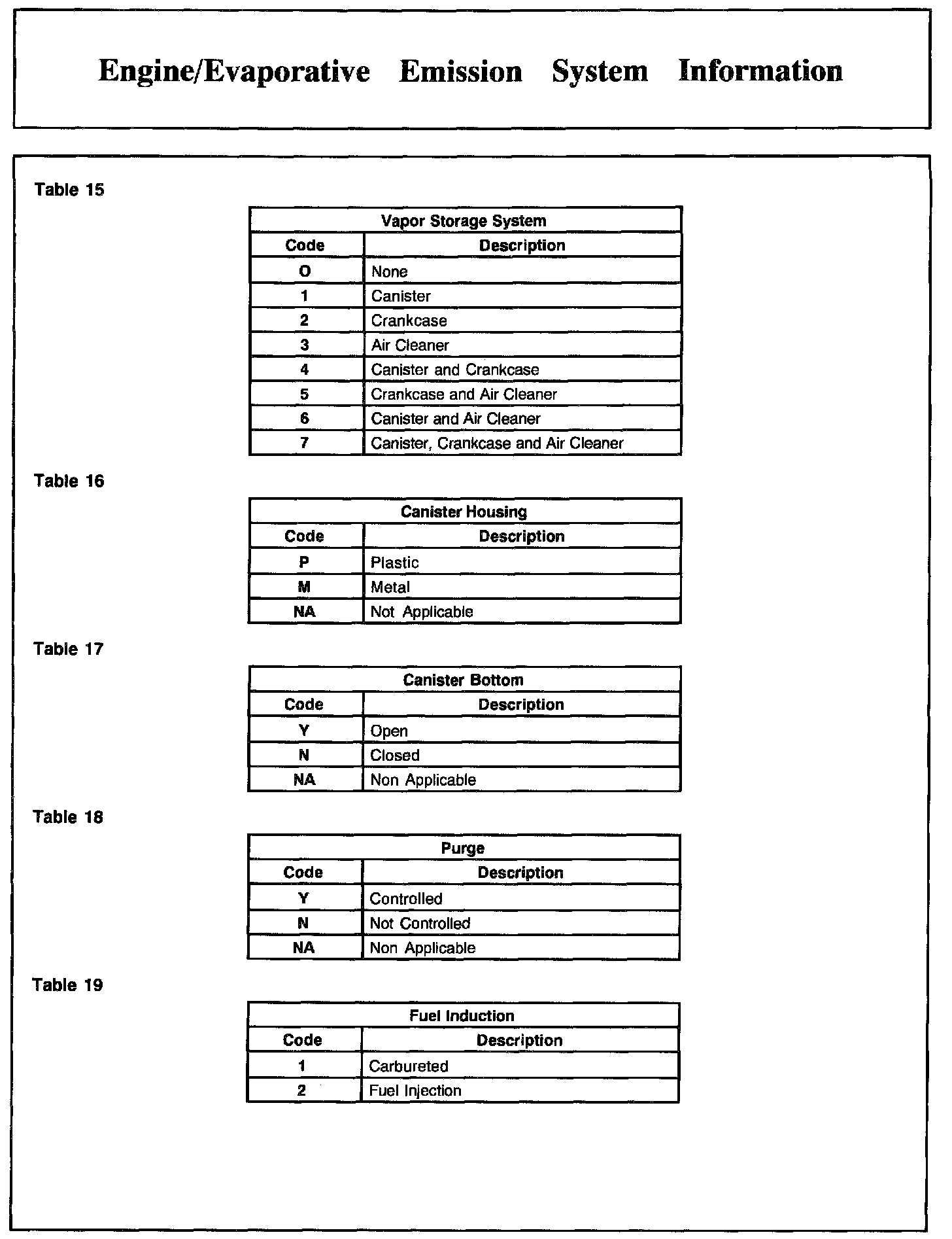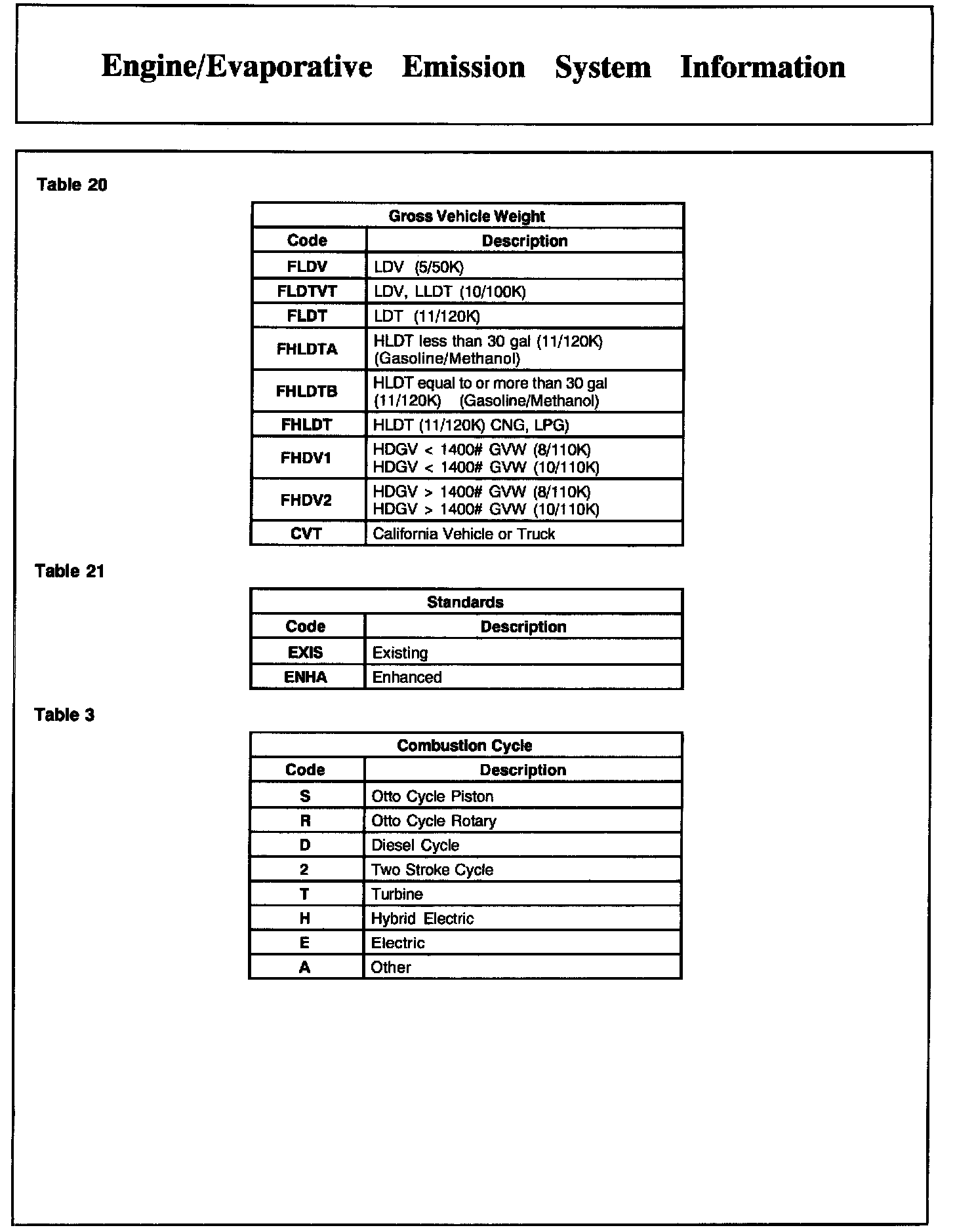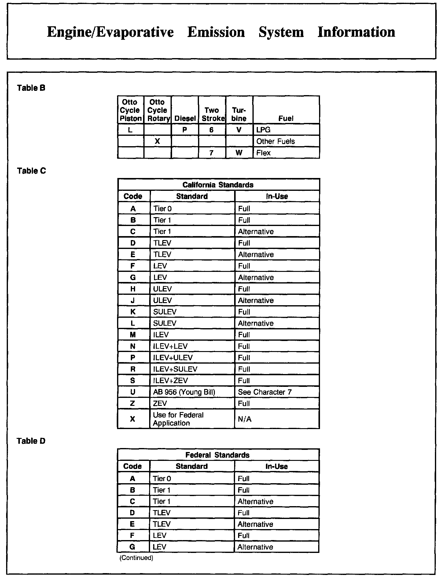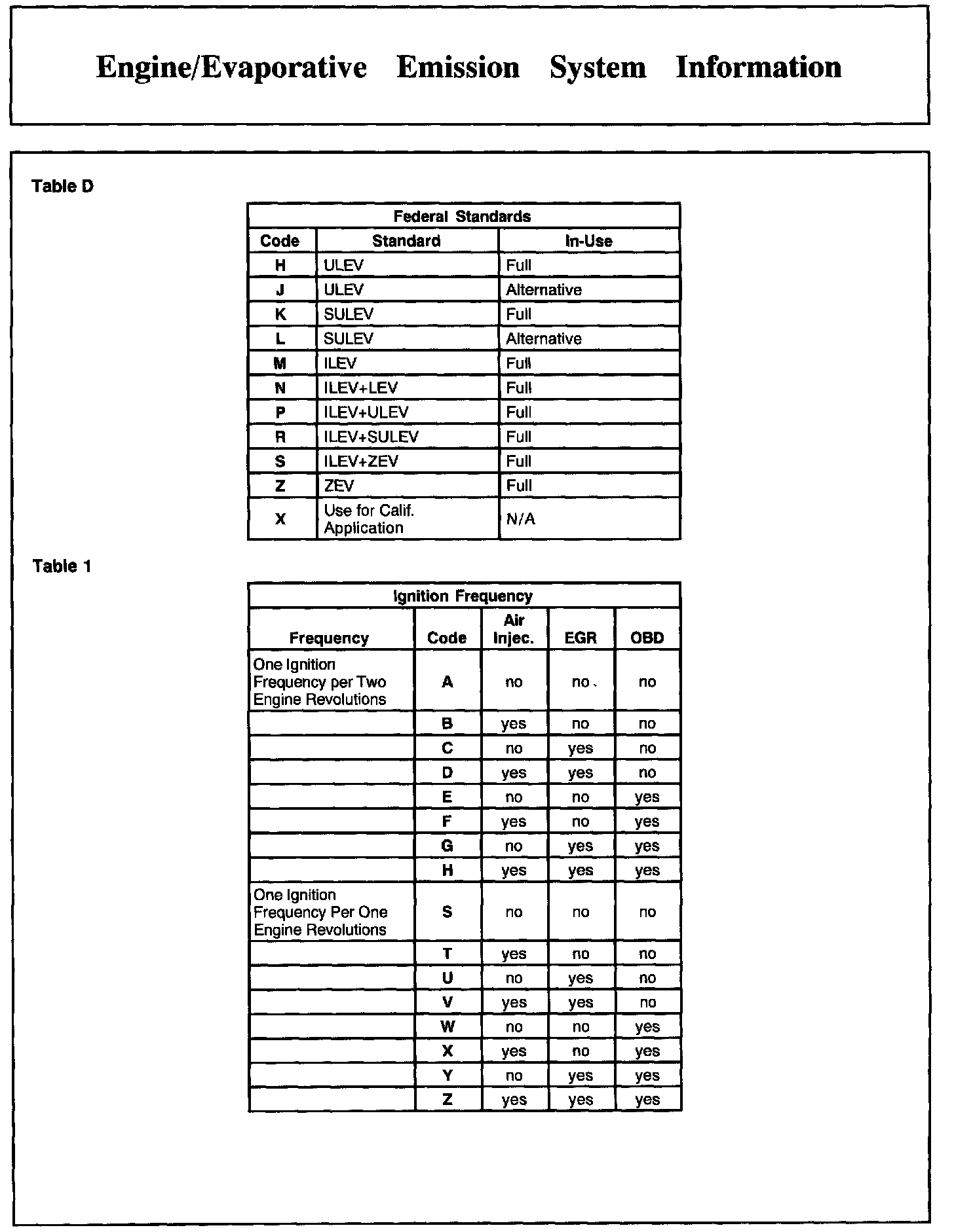 Engine/Evaporative Emission System Information